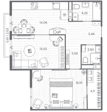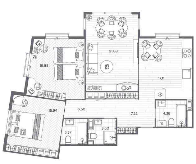 Трехкомнатные квартиры (1 квартира, 1 планировка)