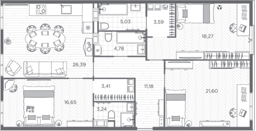 Четырехкомнатные квартиры (8 квартир, 7 планировок)