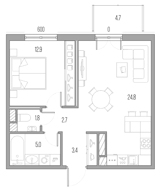 Однокомнатные квартиры (2 квартиры, 1 планировка)