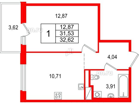 Однокомнатные квартиры (9 квартир, 9 планировок)