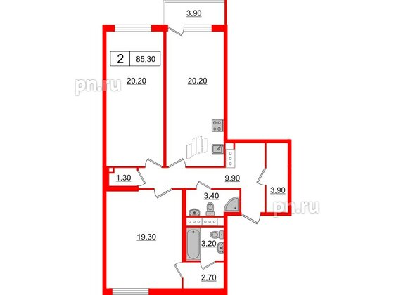 Двухкомнатные квартиры (7 квартир, 7 планировок)