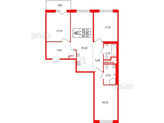 Четырехкомнатные квартиры (1 квартира, 1 планировка)