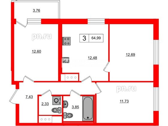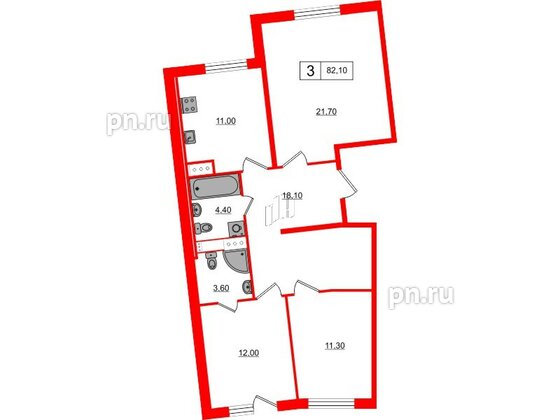 Трехкомнатные квартиры (7 квартир, 7 планировок)