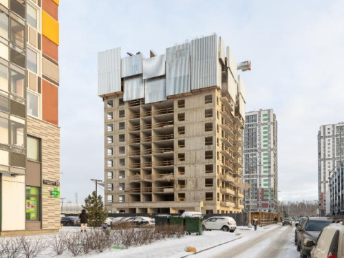 - Возведены перекрытия и лестничные марши с 1 по 14 этажи, монтаж стен ведётся на уровне 15 этажа.