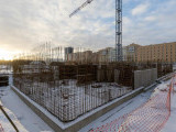 - Продолжается возведение стен и перекрытий, монтаж лестничных маршей и вентиляционных блоков.