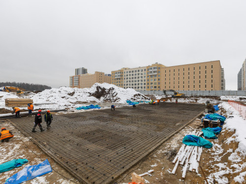 - Организация строительной площадки, земляные работы блок А и Б, устройство бетонной подготовки, устройство гидроизоляции фундаментной плиты, устройство ФП, монтаж башенного крана, монолитный каркас 1, 2 и 3 этажа, монтаж лестничных маршей 1 этажа, армирование перекрытия 3 этажа