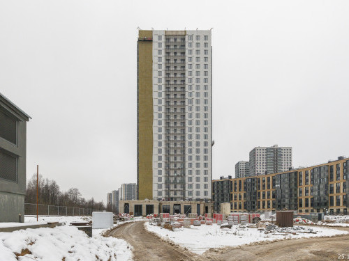 - В корпусе полностью возведены стены и перекрытия с 1 по 25 этажи, все лестничные марши, смонтирована кровля, проведено освежение подвала.