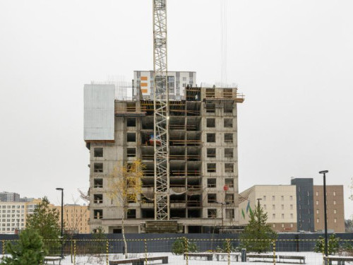 - Возведен монолитный каркас здания до уровня 10-го этажа.