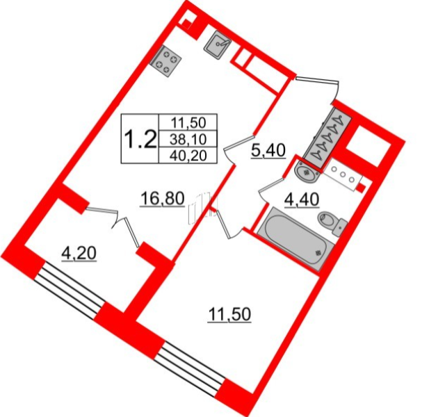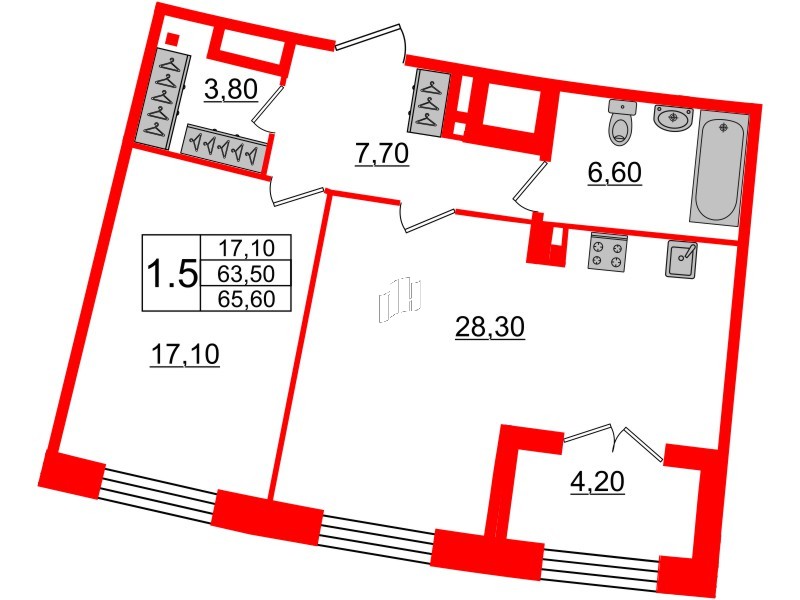 Двухкомнатные квартиры (1 квартира, 1 планировка)