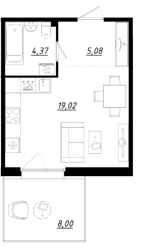 Студия (3 квартиры, 3 планировки)
