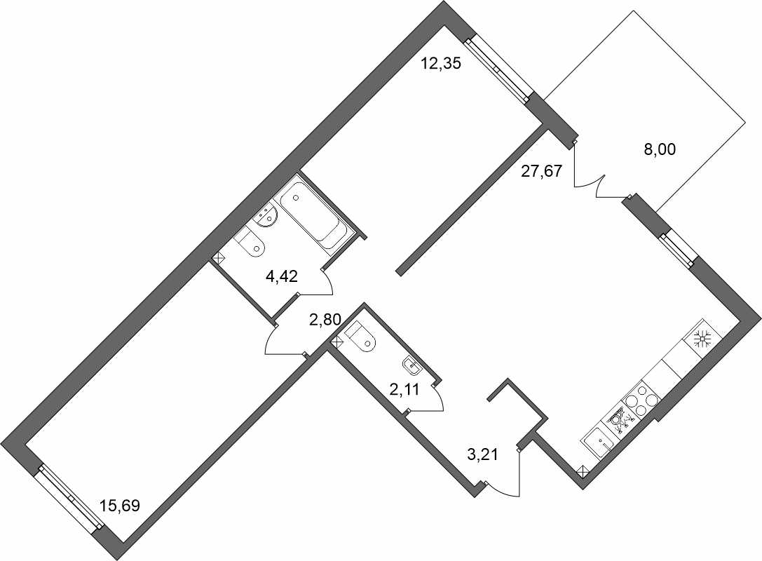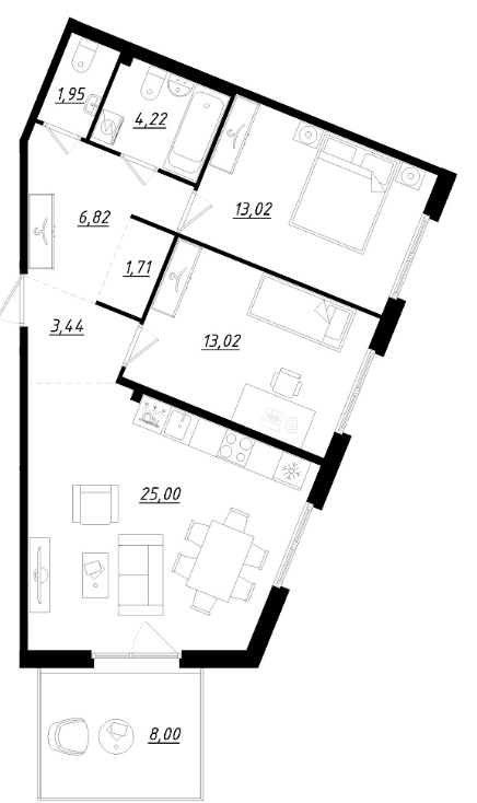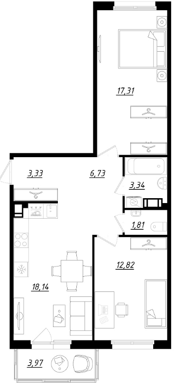 В многоквартирных домах предлагаются планировки от одно- до трехкомнатных. Студий нет. Жилье просторное, потолки 2,75 метра. Комплекс ориентирован на большие семьи. Застройщик обещает детсад, спортивный и торговый центры. Если все задуманное реализуют, жить в квартале будет комфортно.