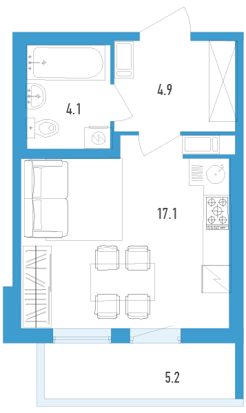 Однокомнатные квартиры (1 квартира, 1 планировка)