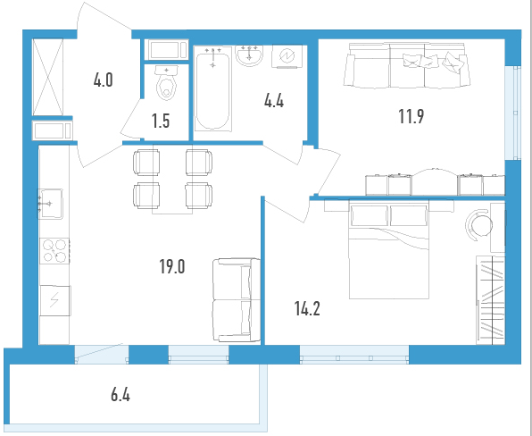 | 56.9 м2 | 26.1 | 19 | 9 этаж | Сдана | 170 000 a/м2 | 9 673 000 руб |