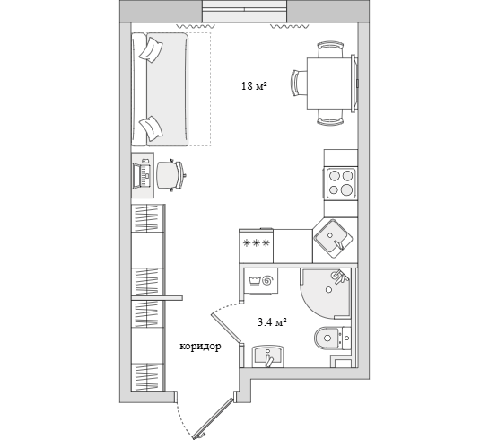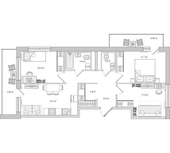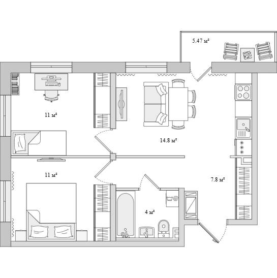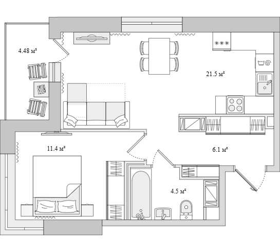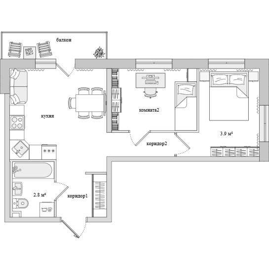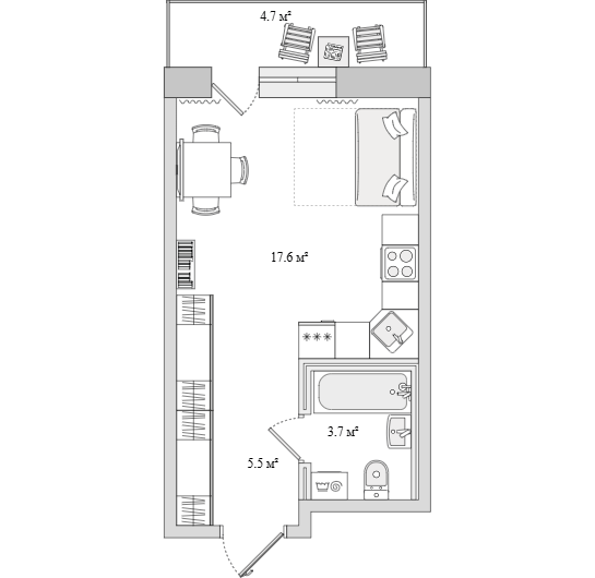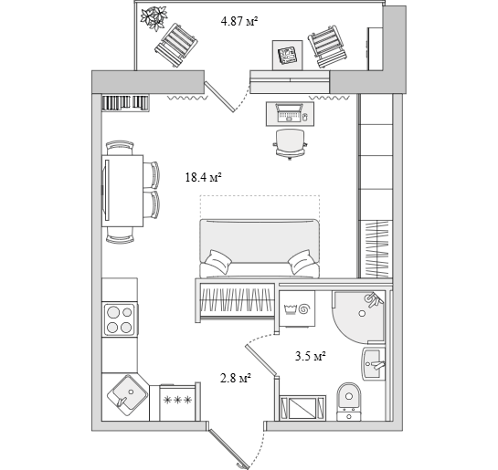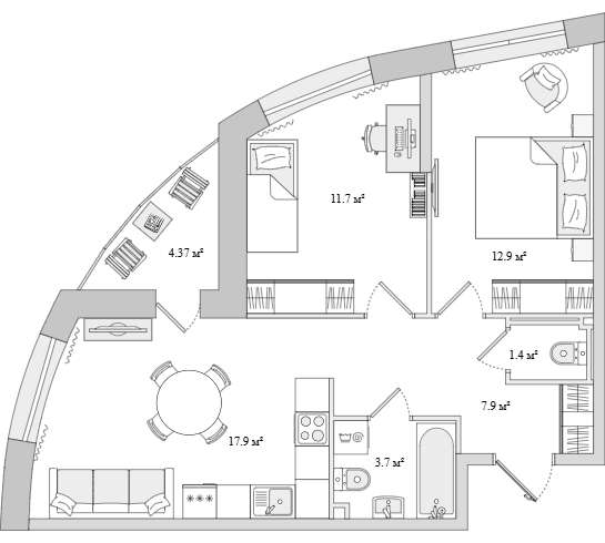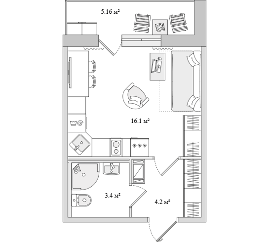 Есть варианты с гардеробными и широкими остекленными балконами, где можно организовать рабочий кабинет или зимний сад.