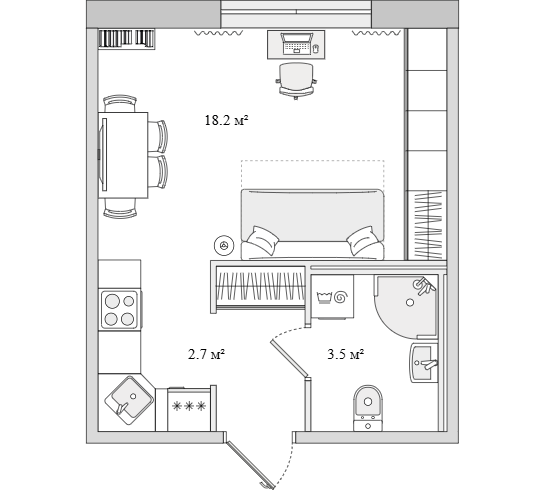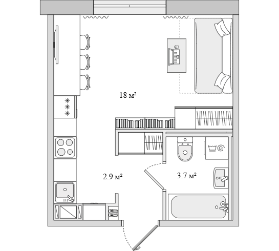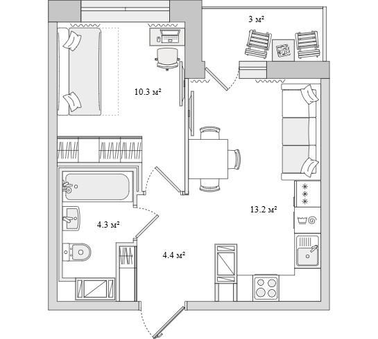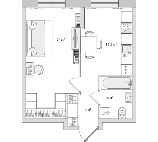 Однокомнатные квартиры (6 квартир, 6 планировок)