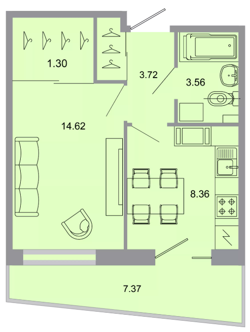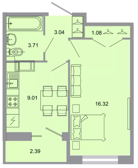 Однокомнатные квартиры (9 квартир, 9 планировок)