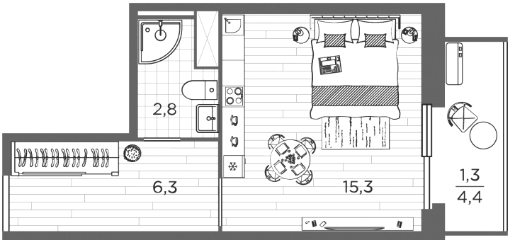 Однокомнатные квартиры (1 квартира, 1 планировка)