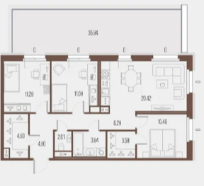 Двухкомнатные квартиры (4 квартиры, 4 планировки)