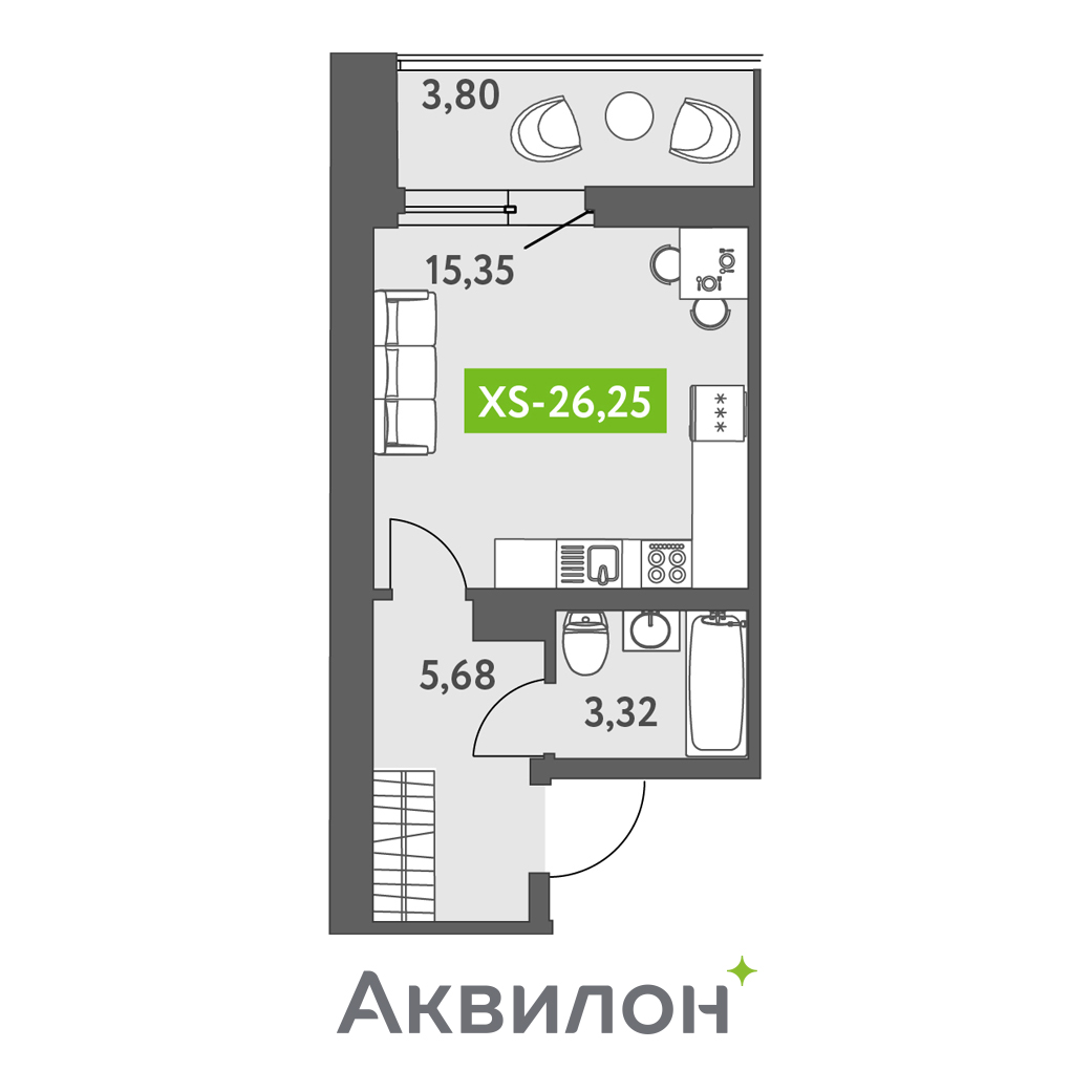 Однокомнатные квартиры (1 квартира, 1 планировка)
