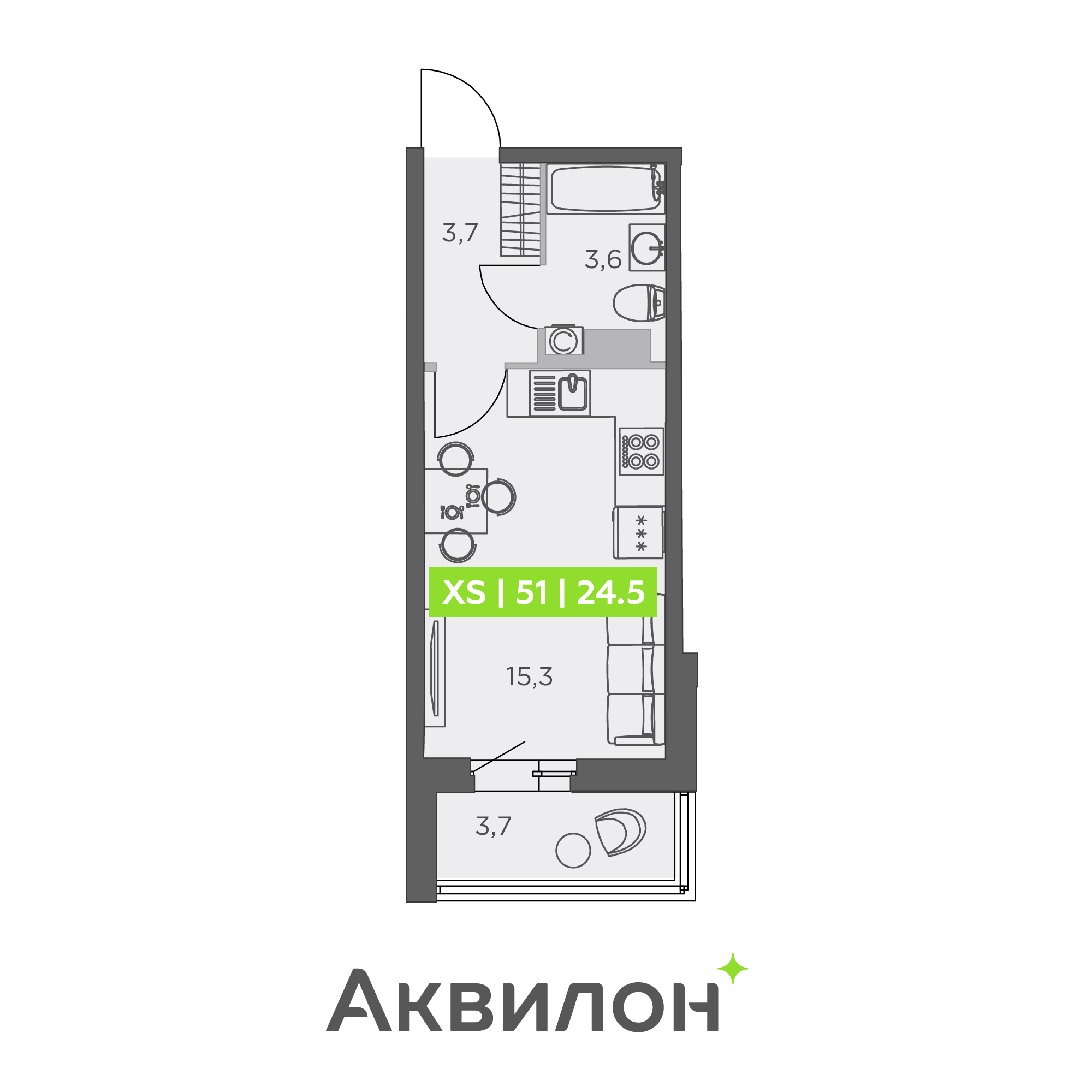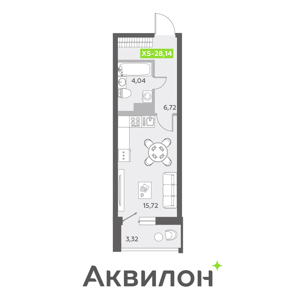 Студия (52 квартиры, 34 планировки)