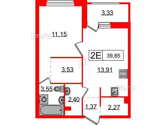 Двухкомнатные квартиры (3 квартиры, 3 планировки)