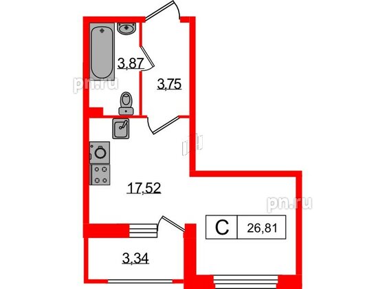 Однокомнатные квартиры (3 квартиры, 3 планировки)