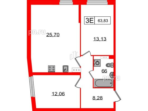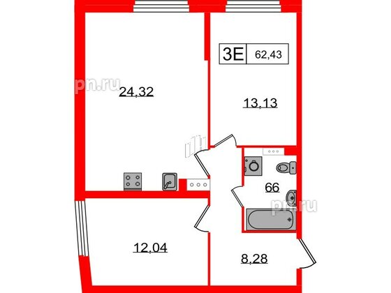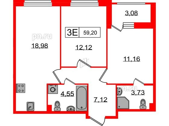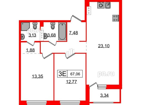 Трехкомнатные квартиры (1 квартира, 1 планировка)