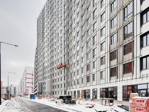 - Ведутся работы по устройству вентилируемого фасада, 1 секция, готовность 35%; 2 секция, готовность 45%;