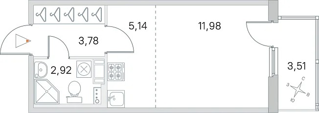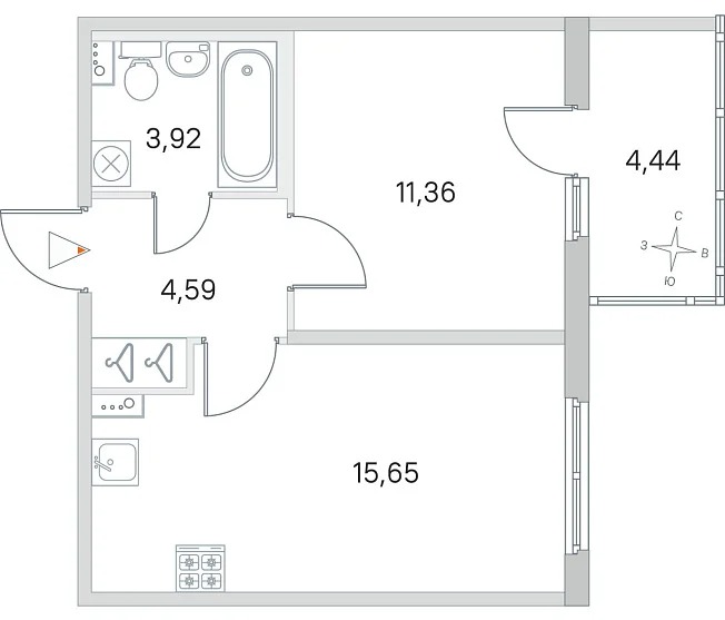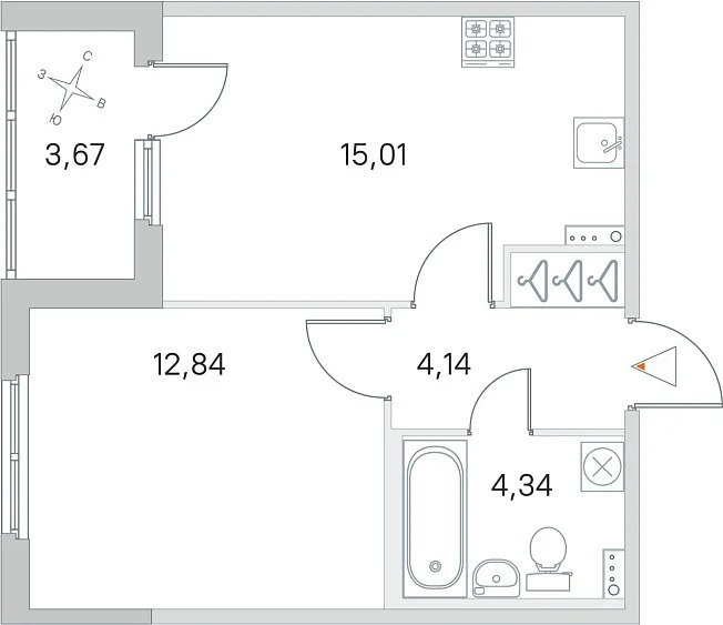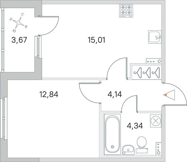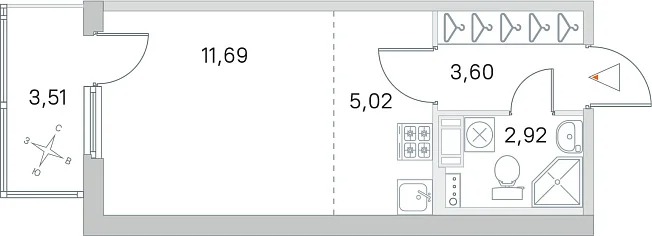 Однокомнатные квартиры (16 квартир, 16 планировок)