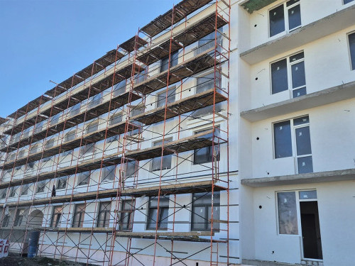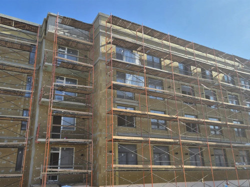 - Секции 2,6,3 - фасадные работы (утепление, штукатурные работы).