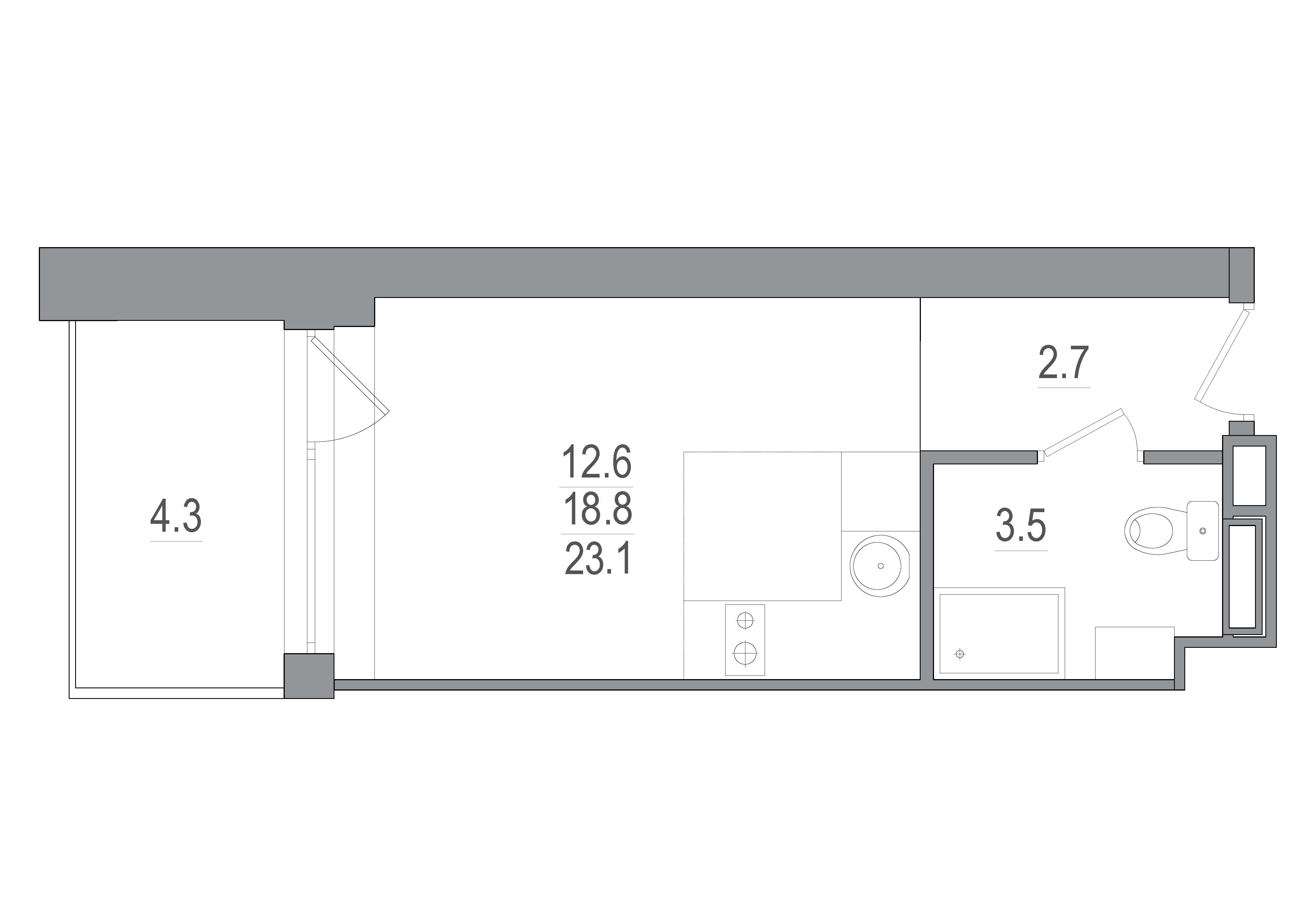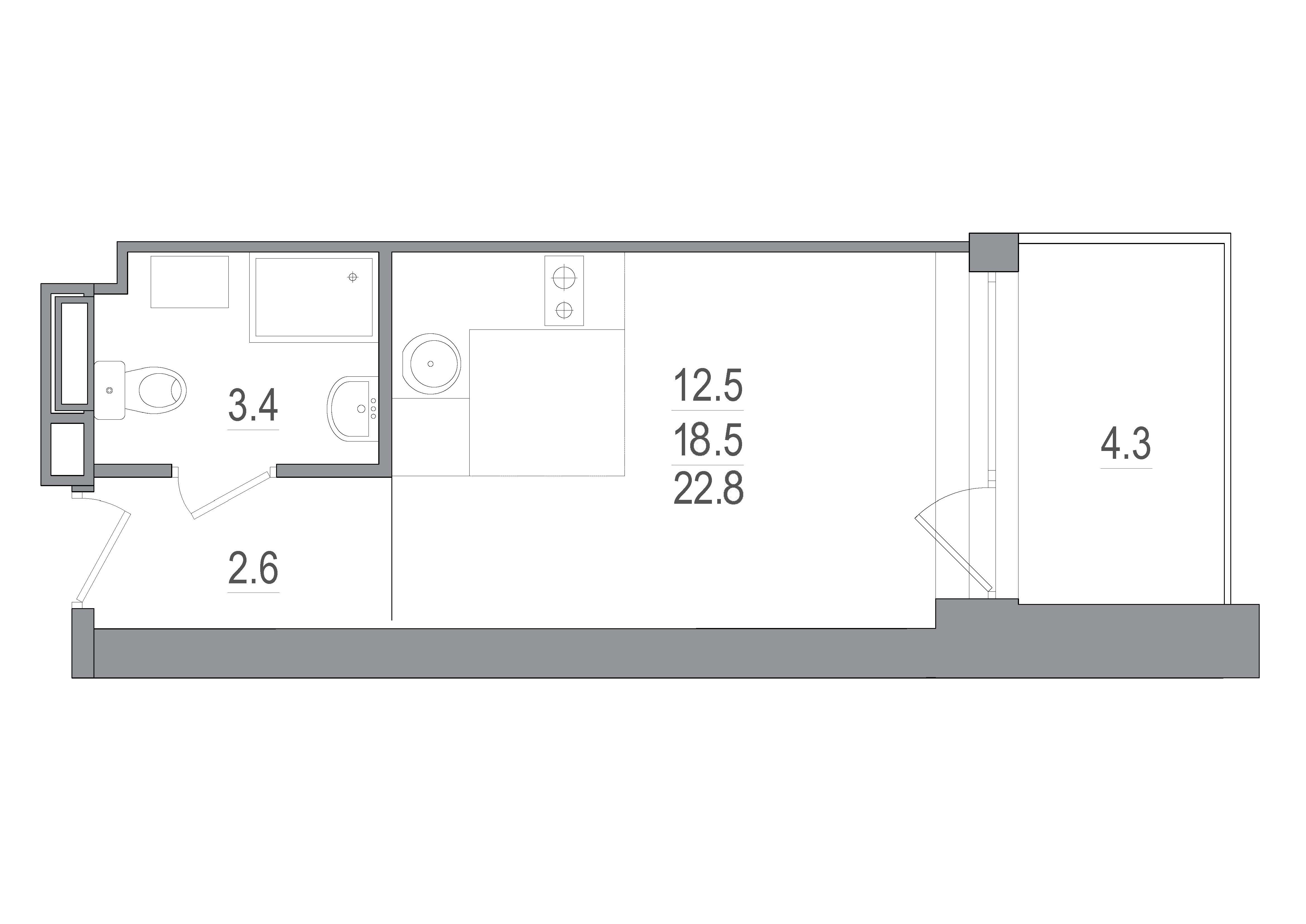Однокомнатные апартаменты (23 апартаментов, 20 планировок)