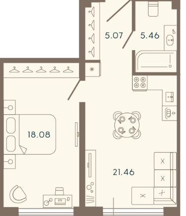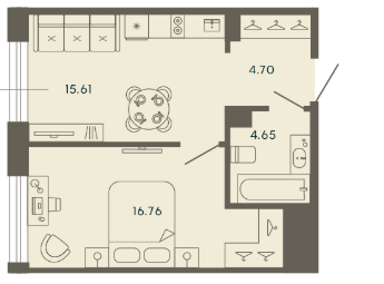 Однокомнатные апартаменты (7 апартаментов, 7 планировок)