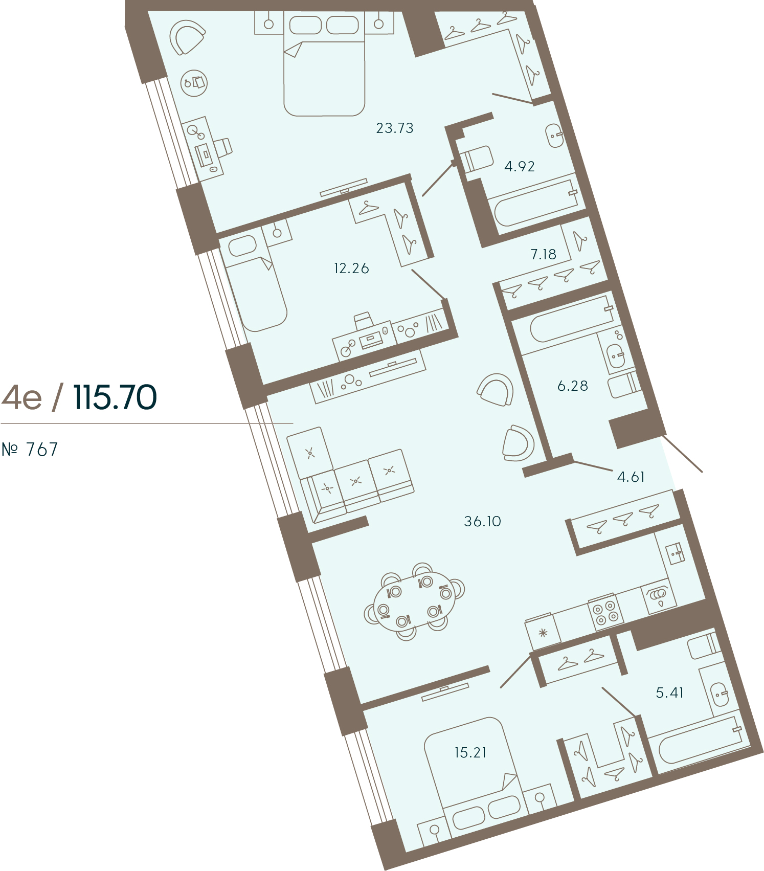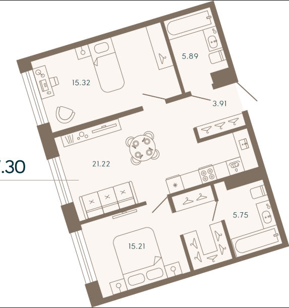Трехкомнатные апартаменты (5 апартаментов, 5 планировок)