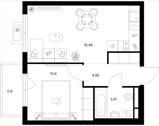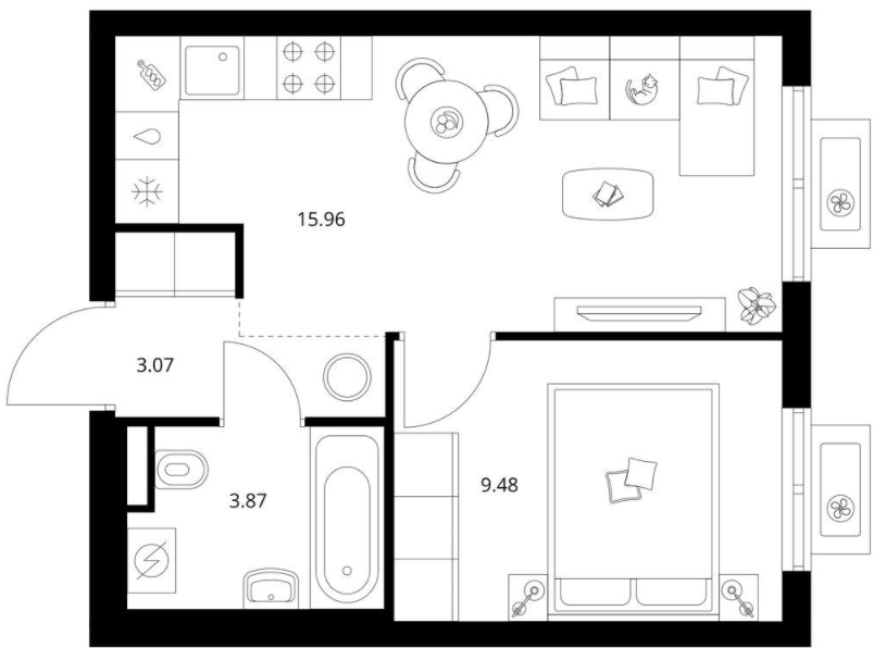 Однокомнатные квартиры (29 квартир, 15 планировок)