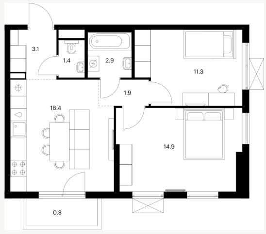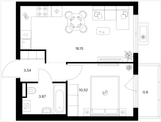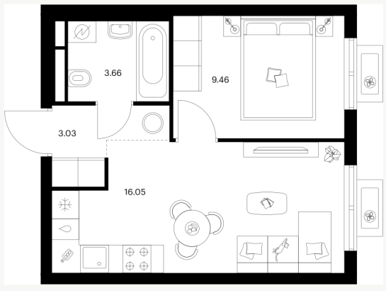 Однокомнатные квартиры (47 квартир, 16 планировок)