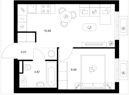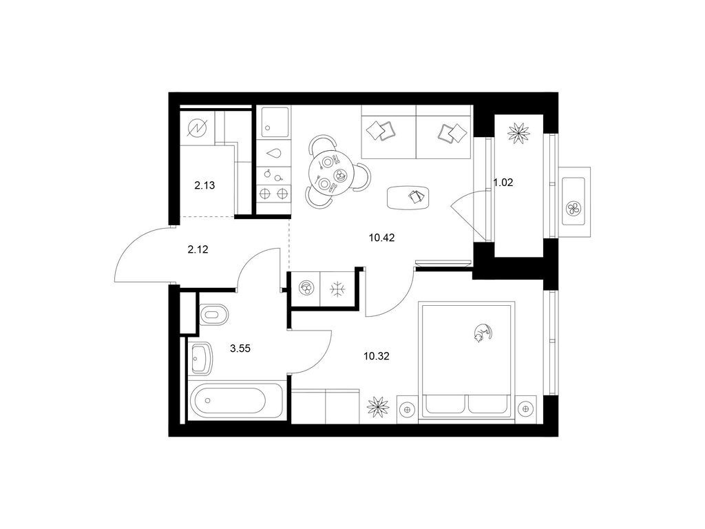 Однокомнатные квартиры (84 квартиры, 39 планировок)