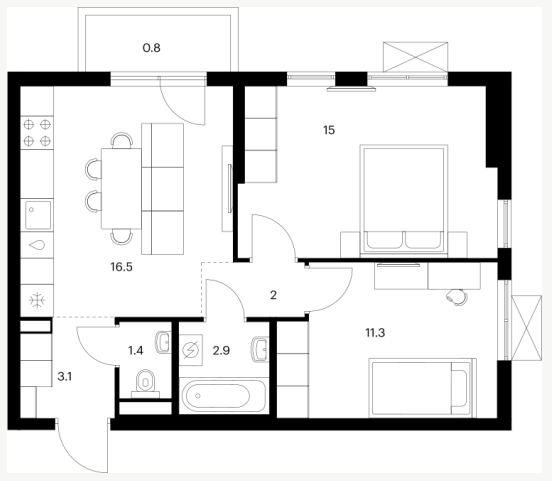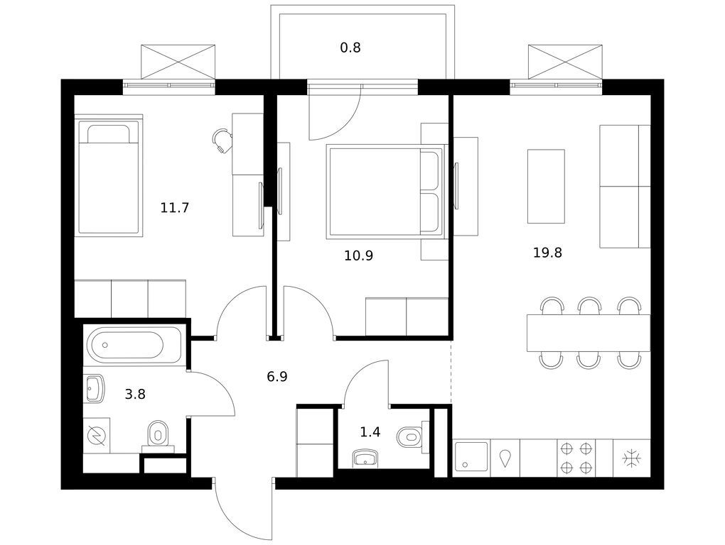 Двухкомнатные квартиры (36 квартир, 21 планировка)