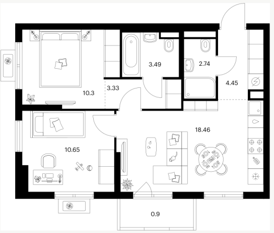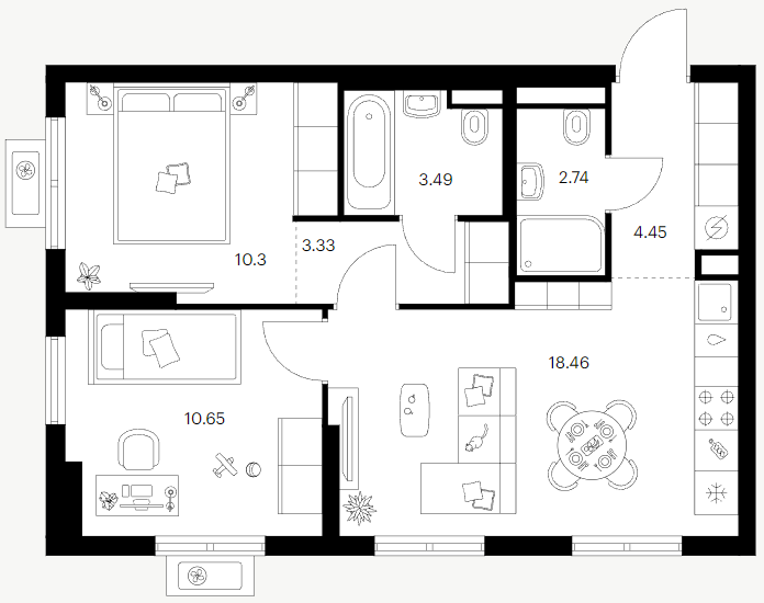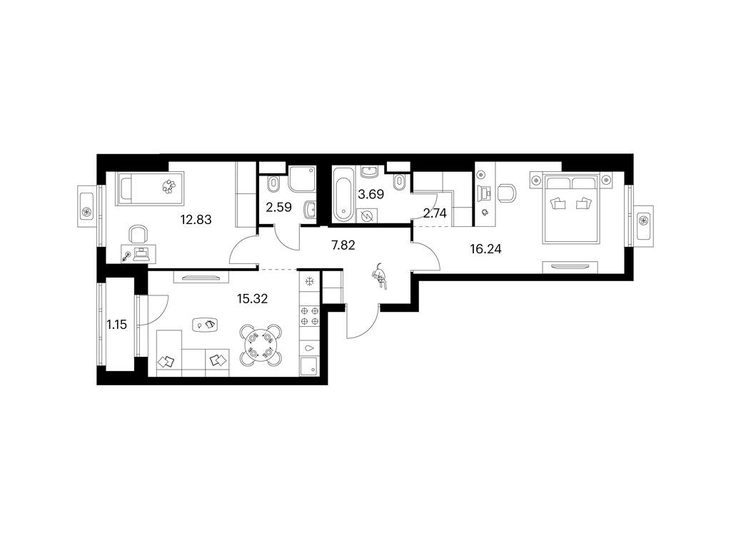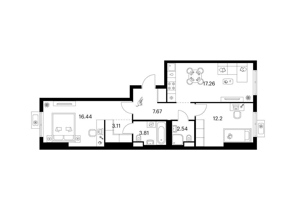 Покупателям предложены квартиры от студий до трехкомнатных площадью 25-80 квадратных метров. Жилье передается дольщикам с финишной отделкой. В санузлах выложат плитку Kerama Marazzi, установят ванну или поддон, унитаз, раковину и смесители. В комнатах уложат ламинат 32 класса, стены оклеят обоями под окраску, монтируют матовый натяжной потолок.