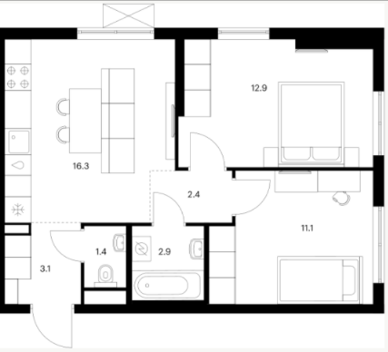 Двухкомнатные квартиры (37 квартир, 22 планировки)