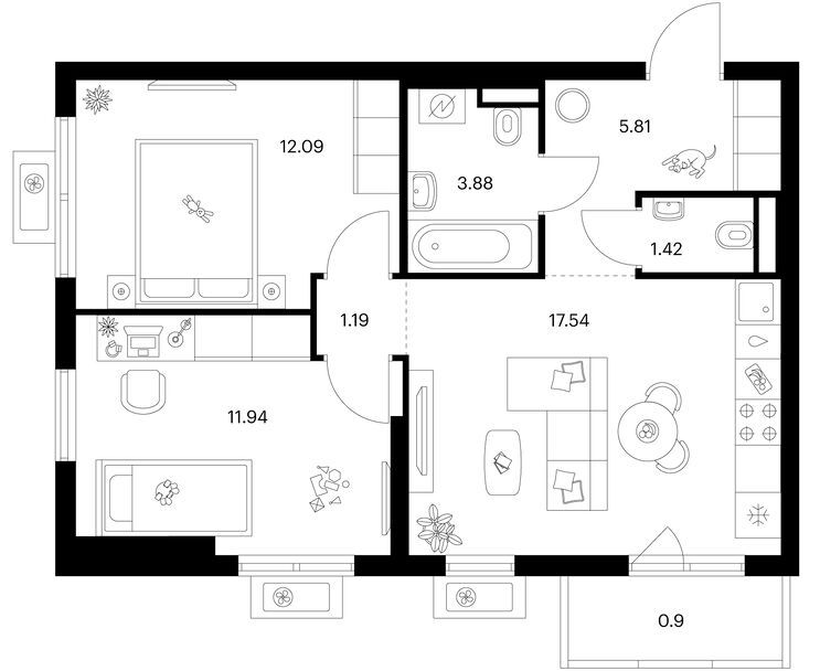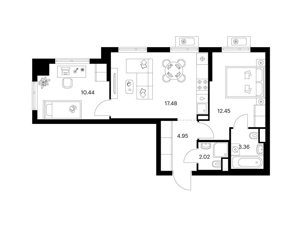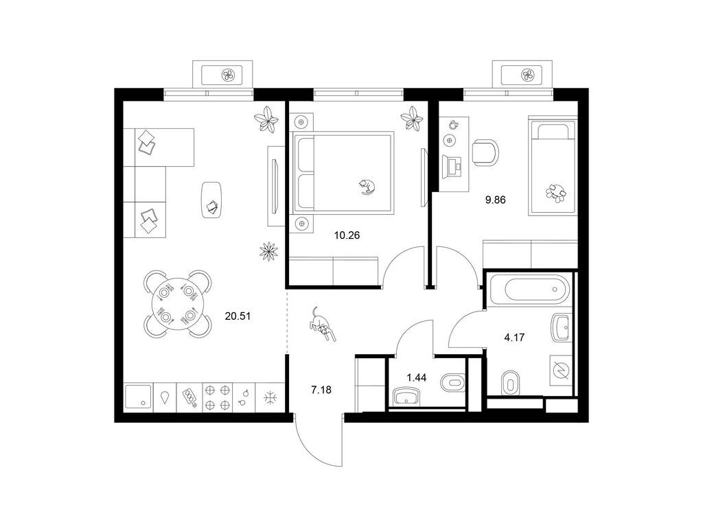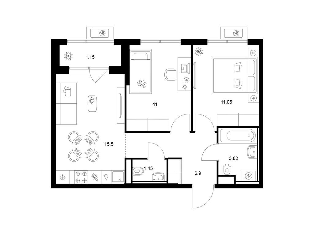 Двухкомнатные квартиры (72 квартиры, 33 планировки)