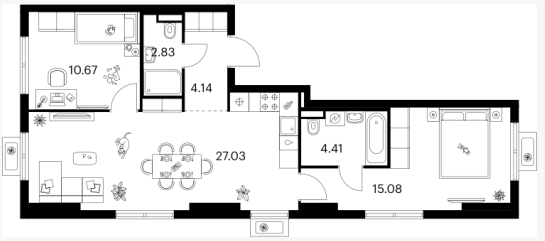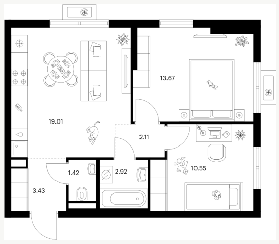 ответитьВыбрала однокомнатную с видом на парк. Квартира, хоть и однокомнатная, но очень функциональная. В комнате спокойно встала двуспальная кровать, по квартире стоит несколько вместительных шкафов. Стиралка в ванной тоже не мешает (поставила ее в тумбу под раковиной). В общем, классно. И в целом нравится комплекс. Двор хорошо обустроен. Приходить домой приятно.