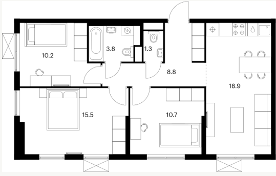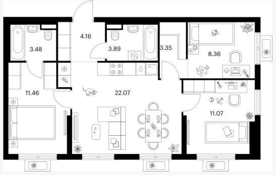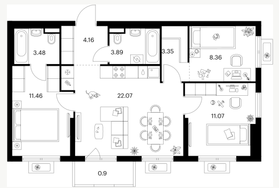Трехкомнатные квартиры (4 квартиры, 3 планировки)