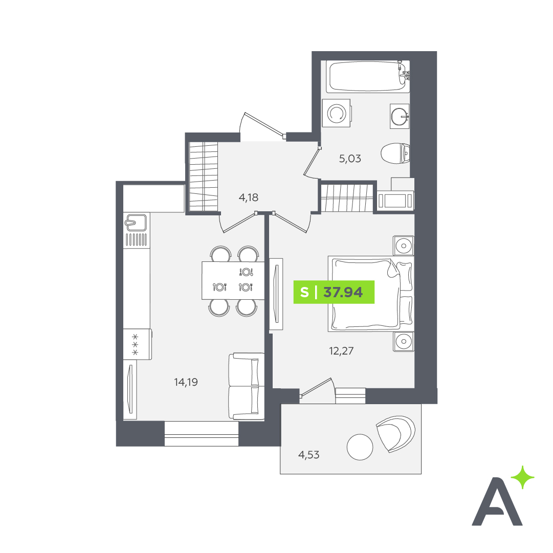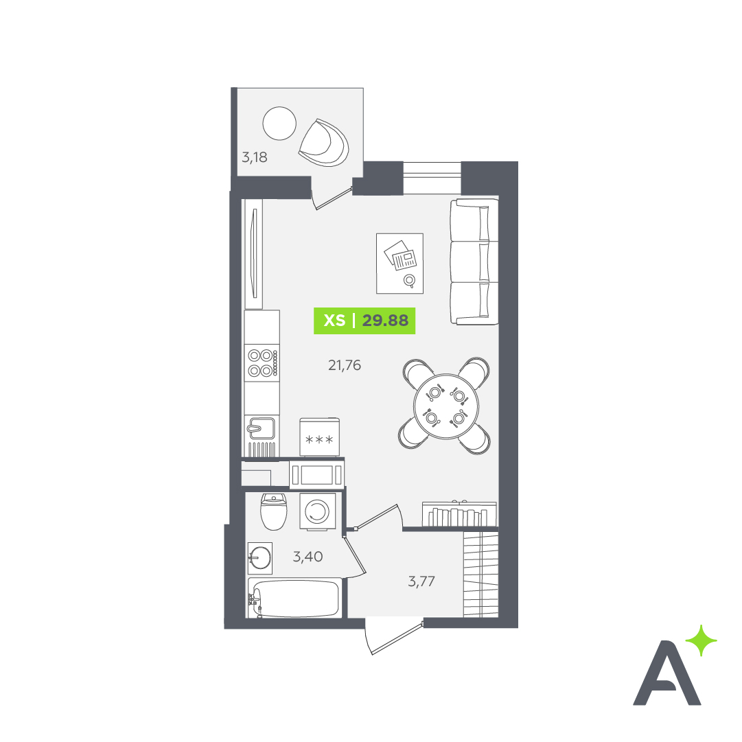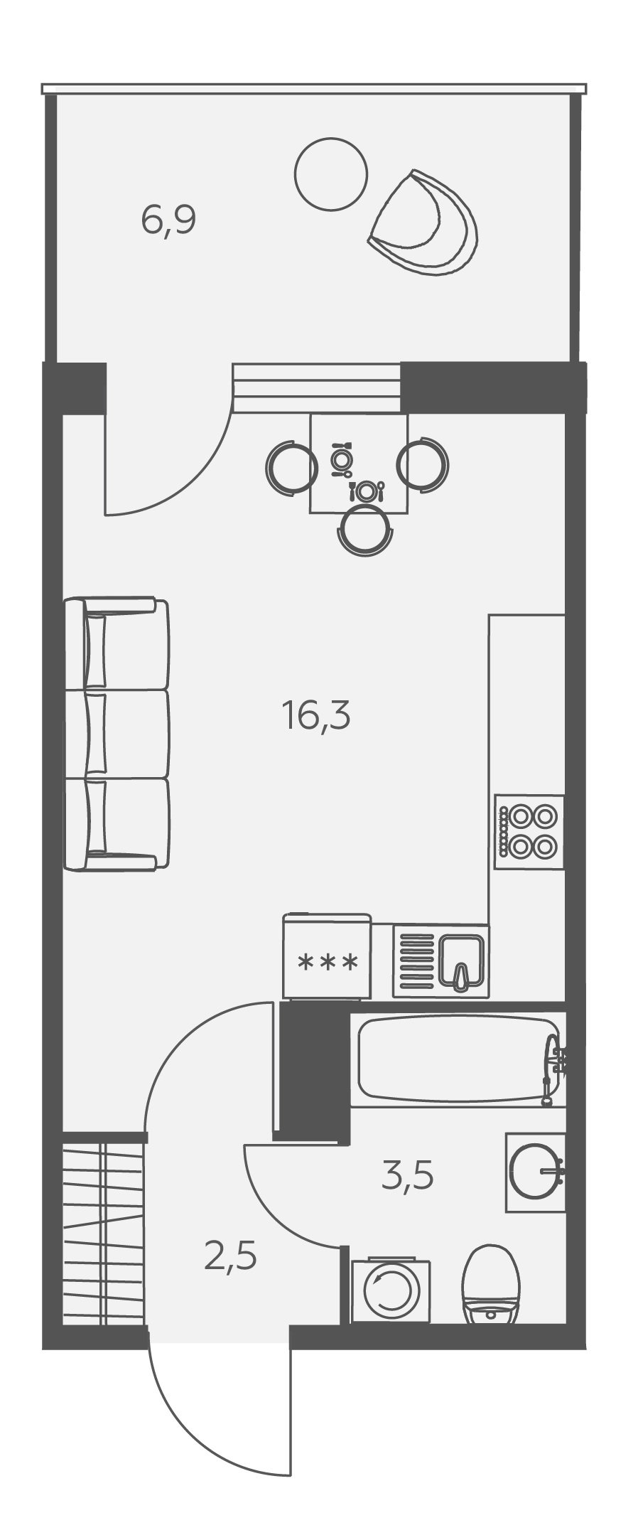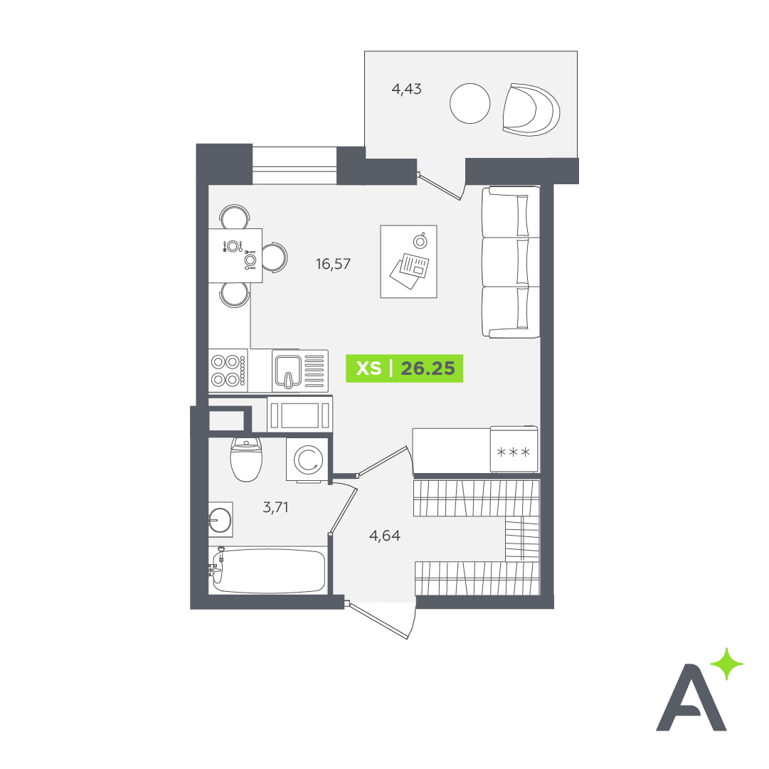 Студия (107 квартир, 59 планировок)