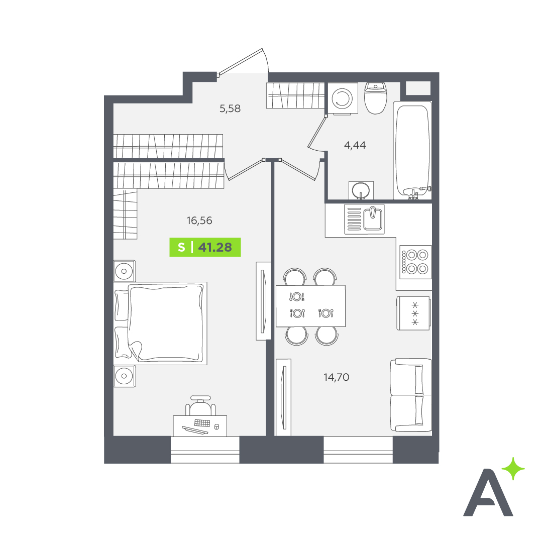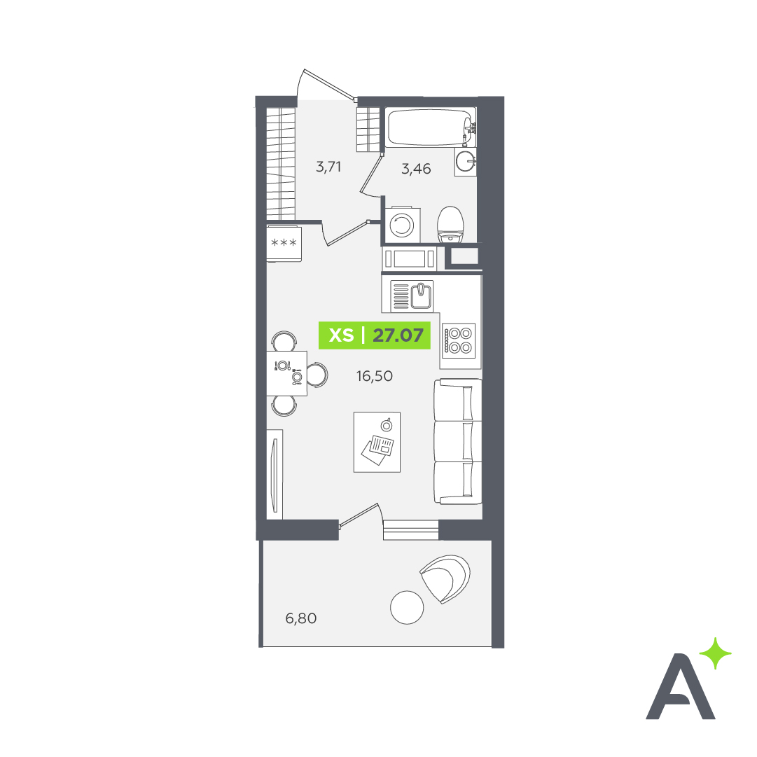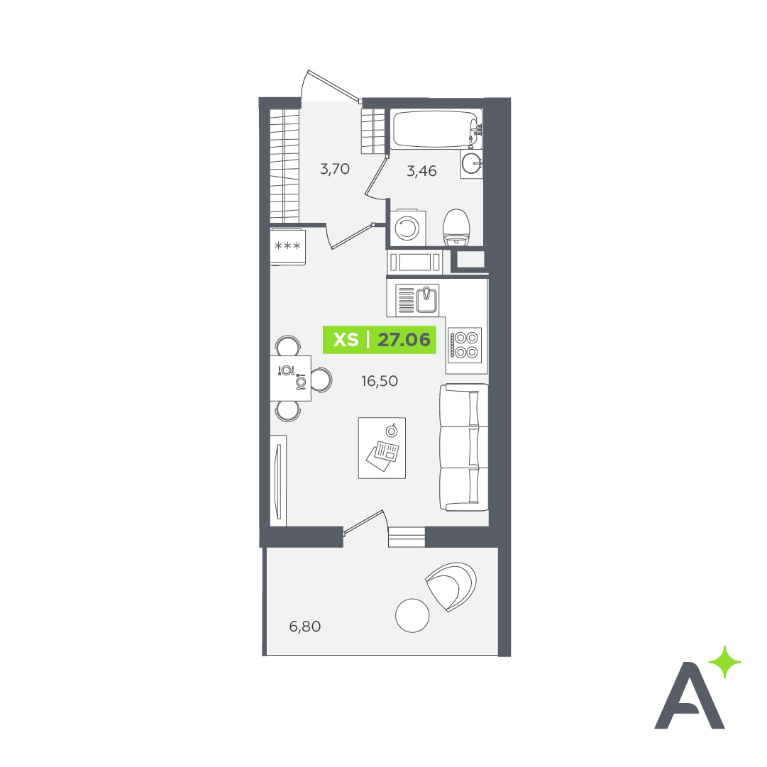 В новостройке предложены квартиры от студий до 4-комнатных. В первом доме 649, во втором 341 планировка. Площадь жилья 24-80 кв. м, высота потолков 2,72 метра. Окна с замками защиты увеличены по ширине и высоте — 1,67х1,67 м. Предусмотрены балконы глубиной 1,8 метра. Недвижимость сдается с отделкой под чистовую, финишный ремонт в одном из предложенных стилей можно заказать за доплату.