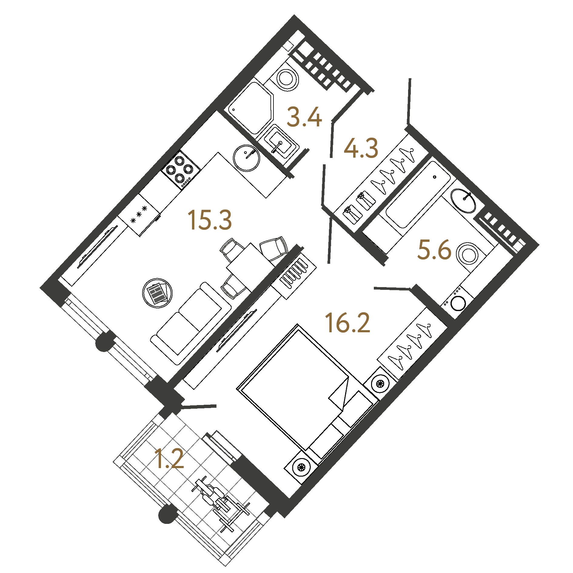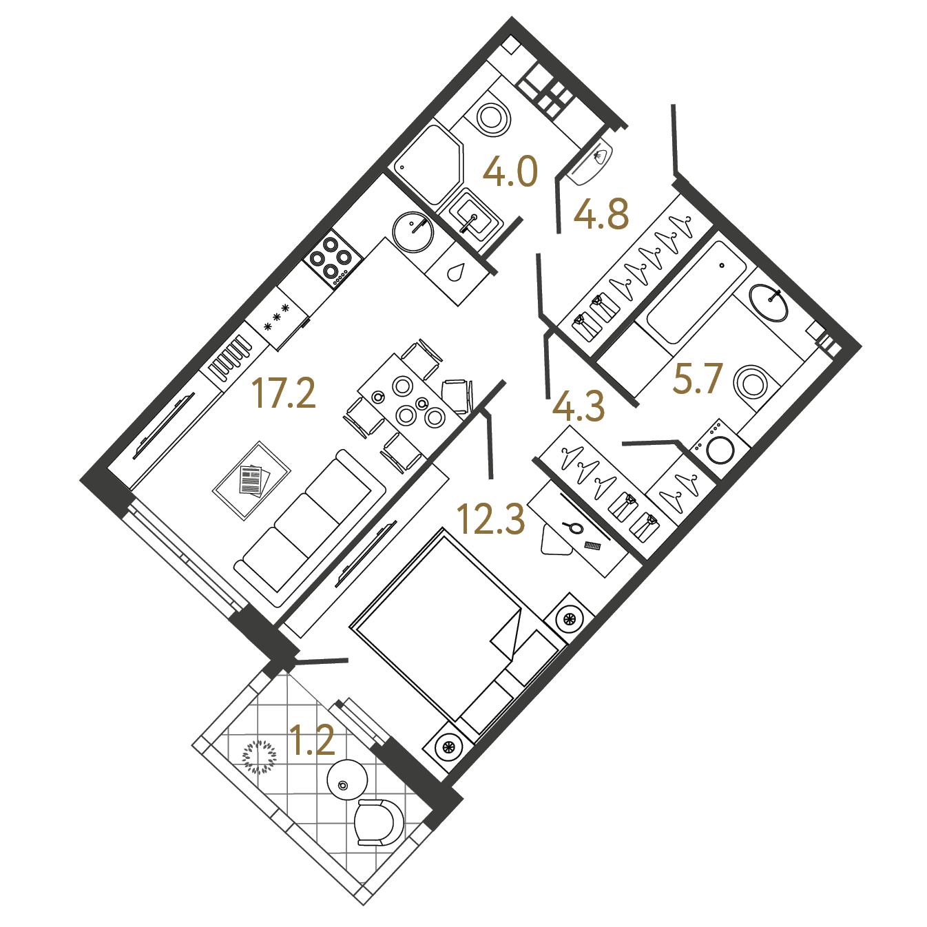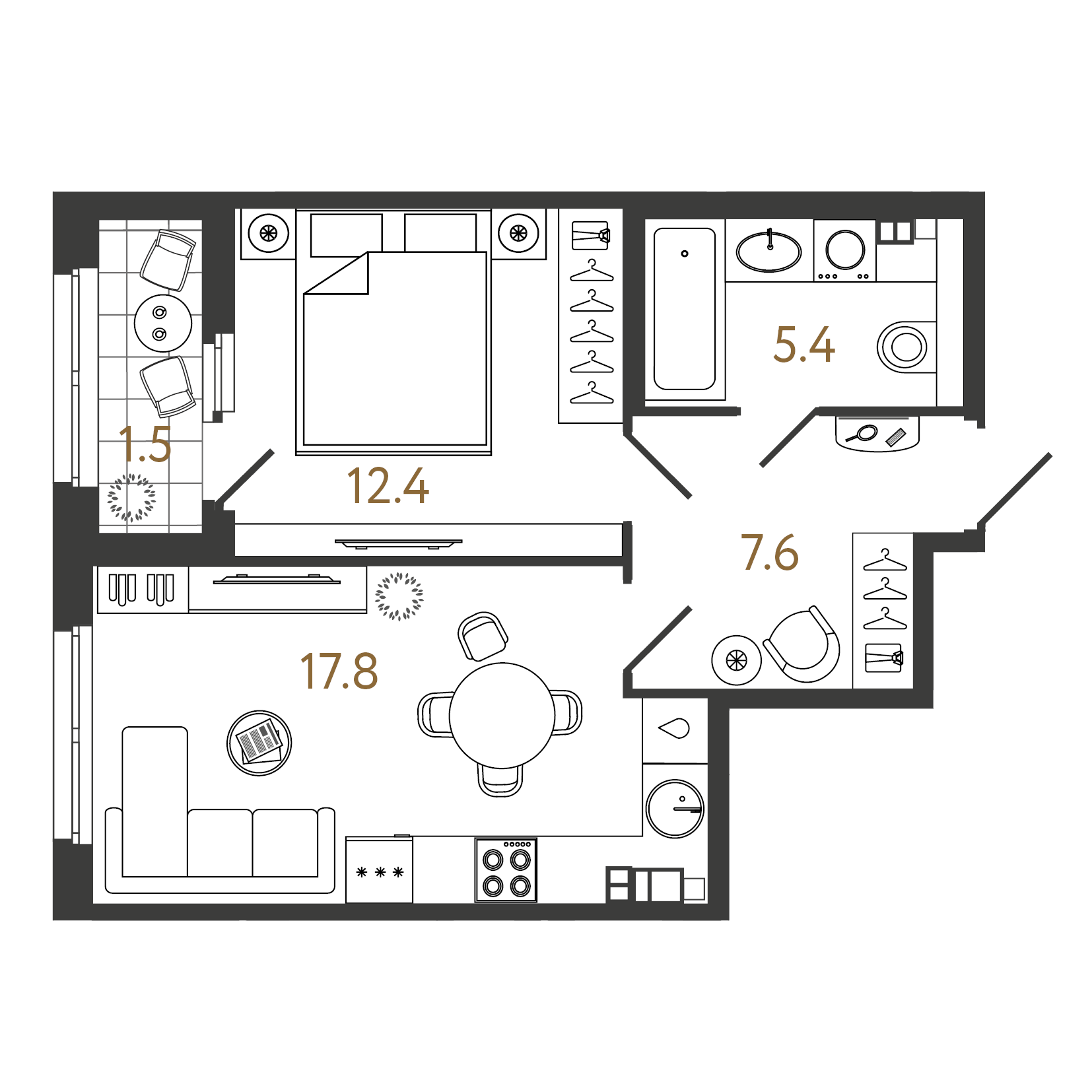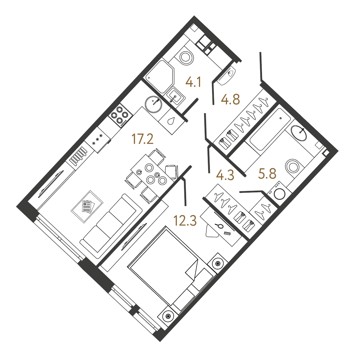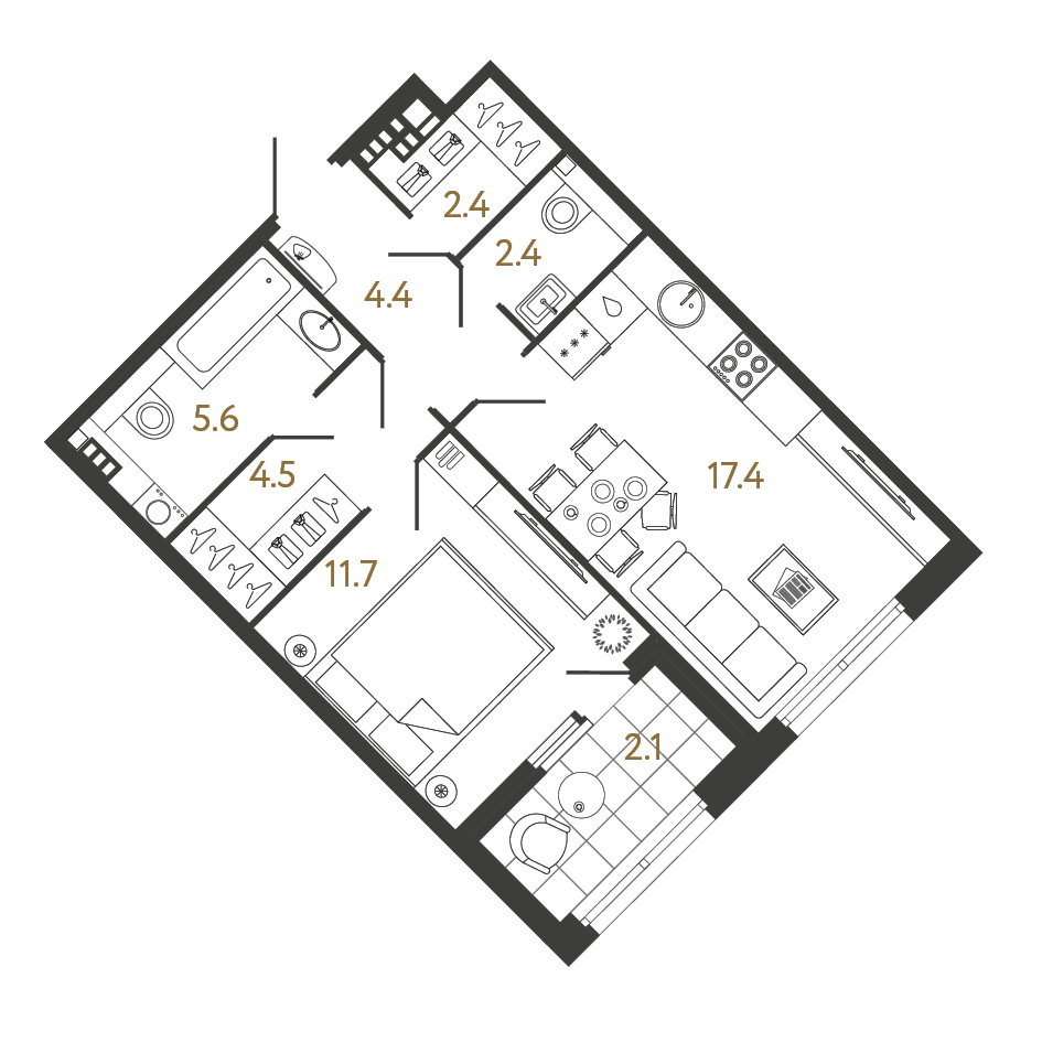 Однокомнатные квартиры (11 квартир, 11 планировок)