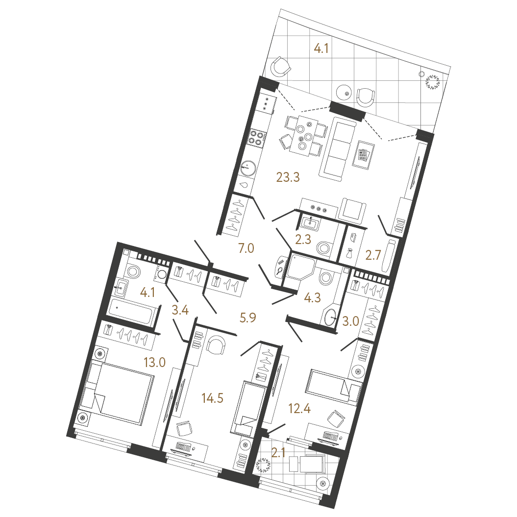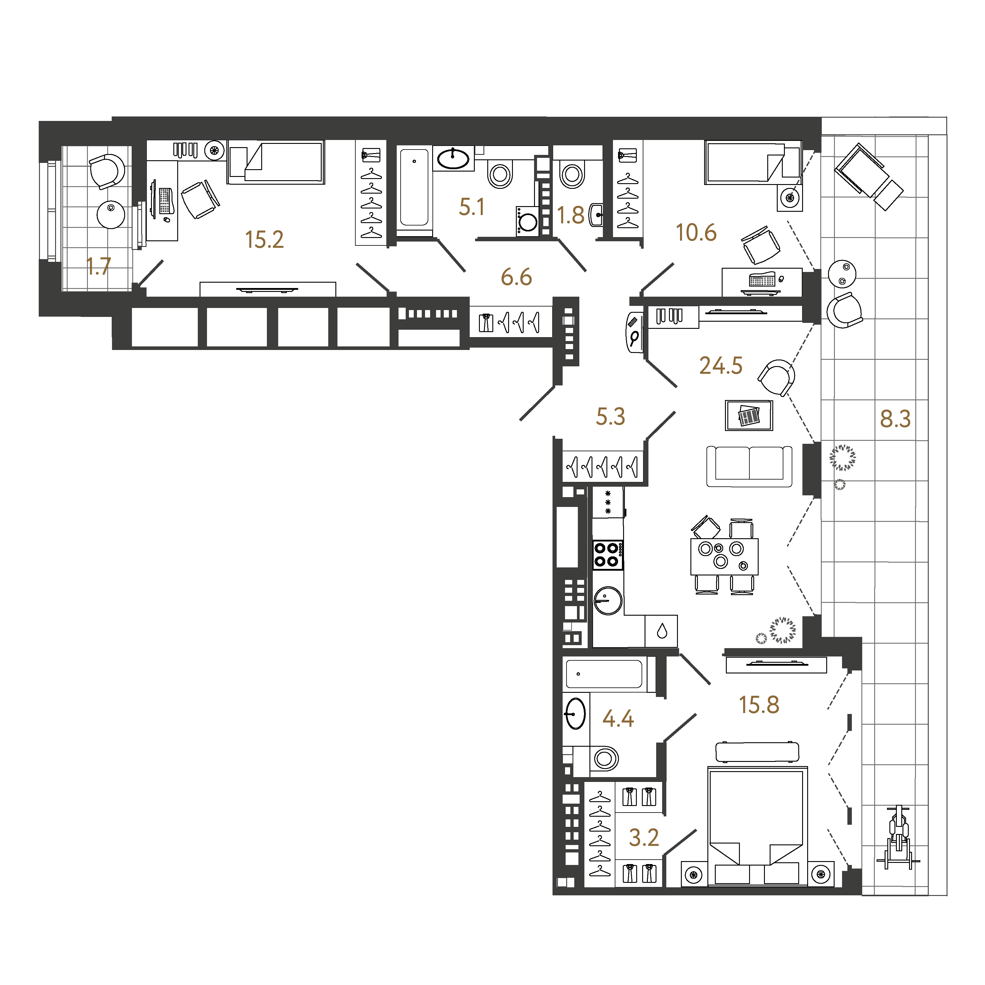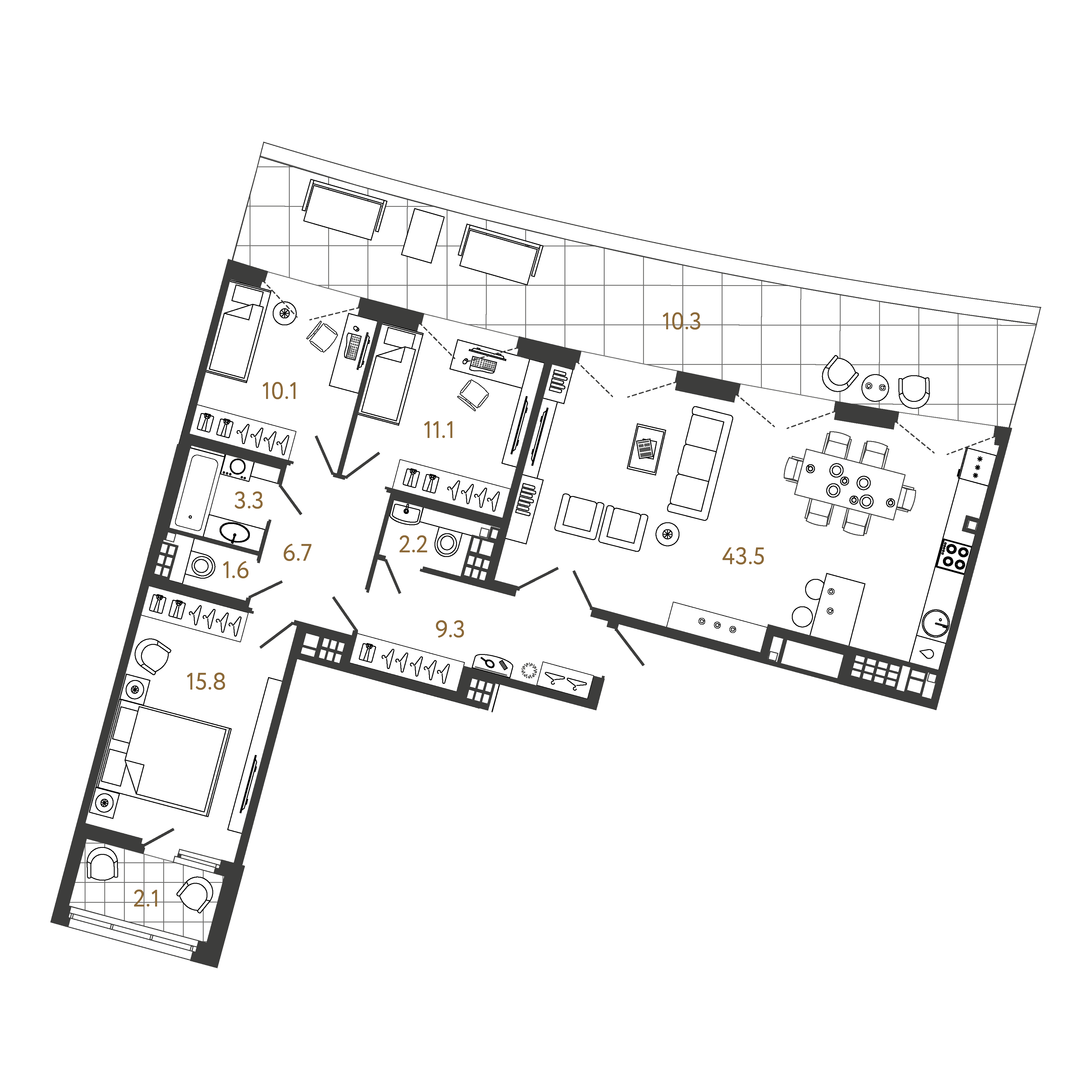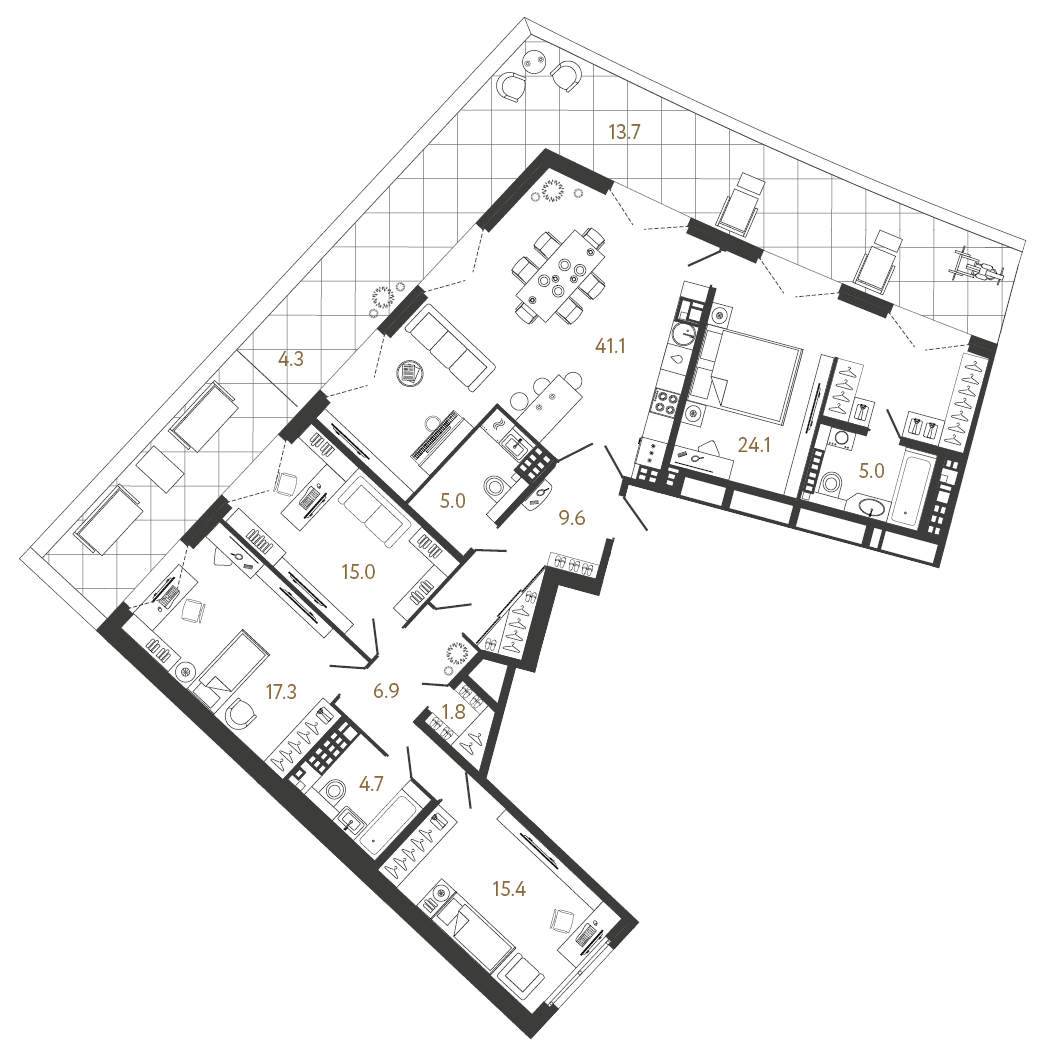 Четырехкомнатные квартиры (1 квартира, 1 планировка)