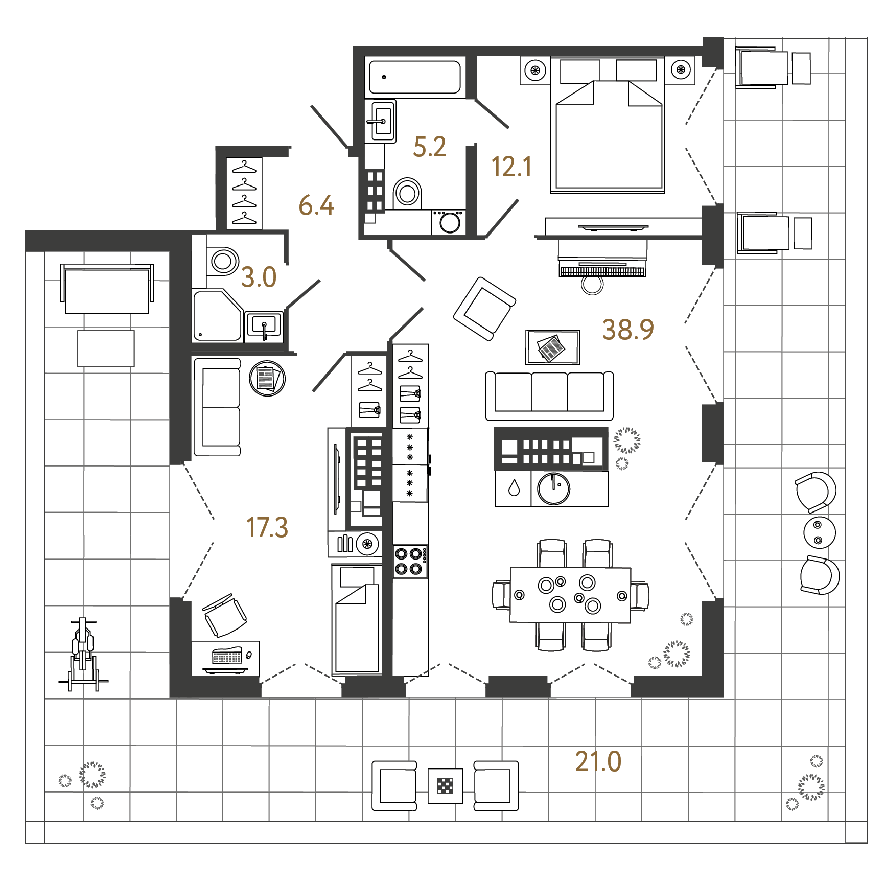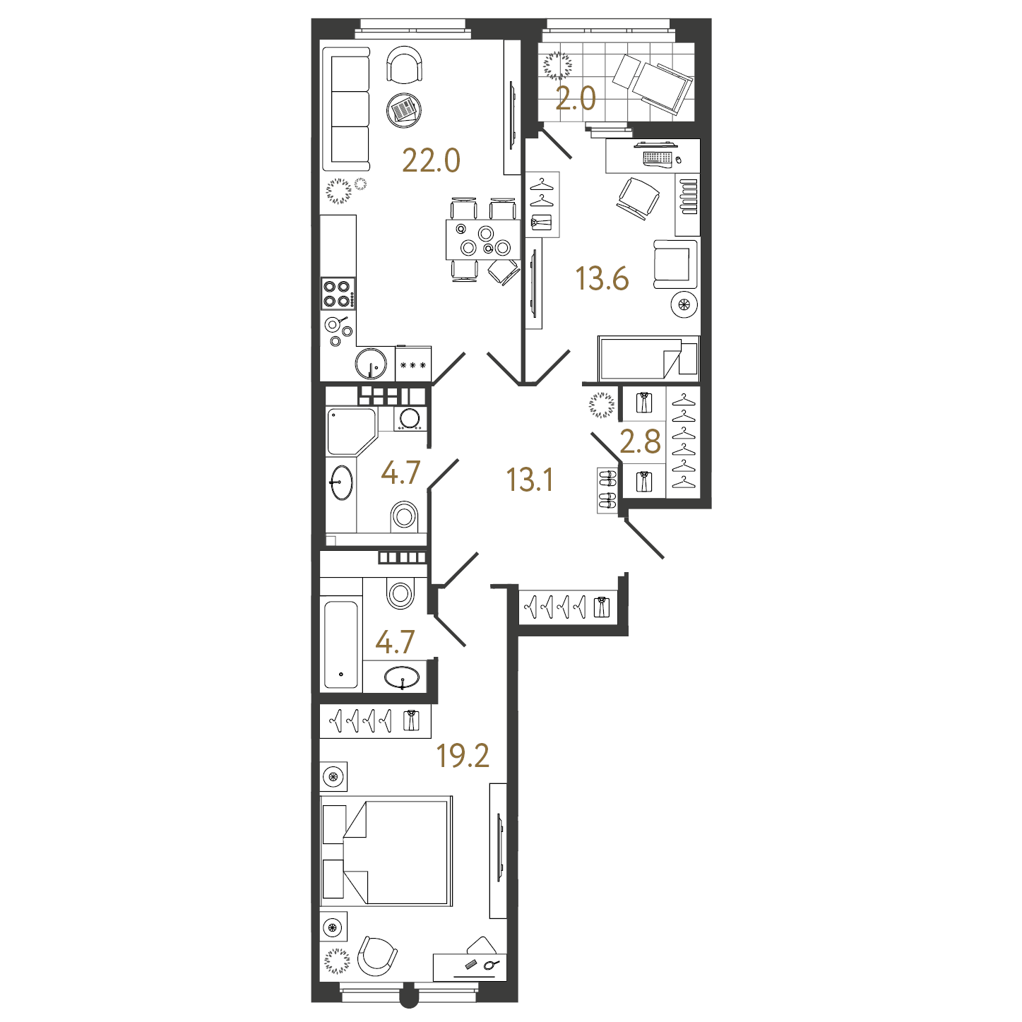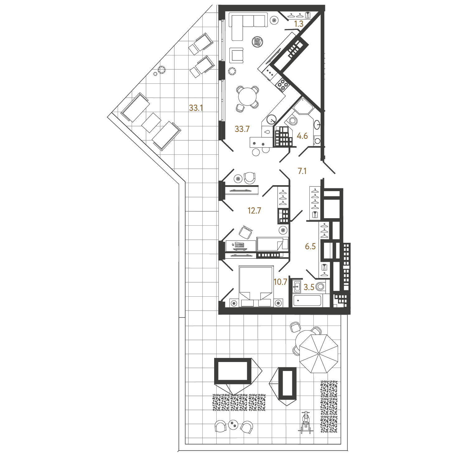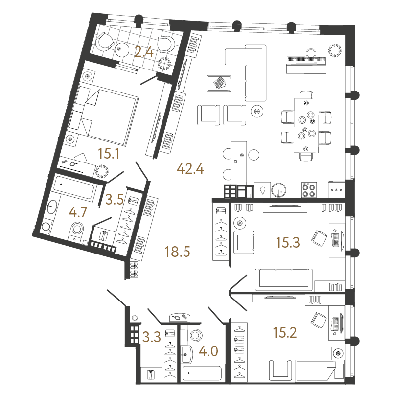 Четырехкомнатные квартиры (1 квартира, 1 планировка)