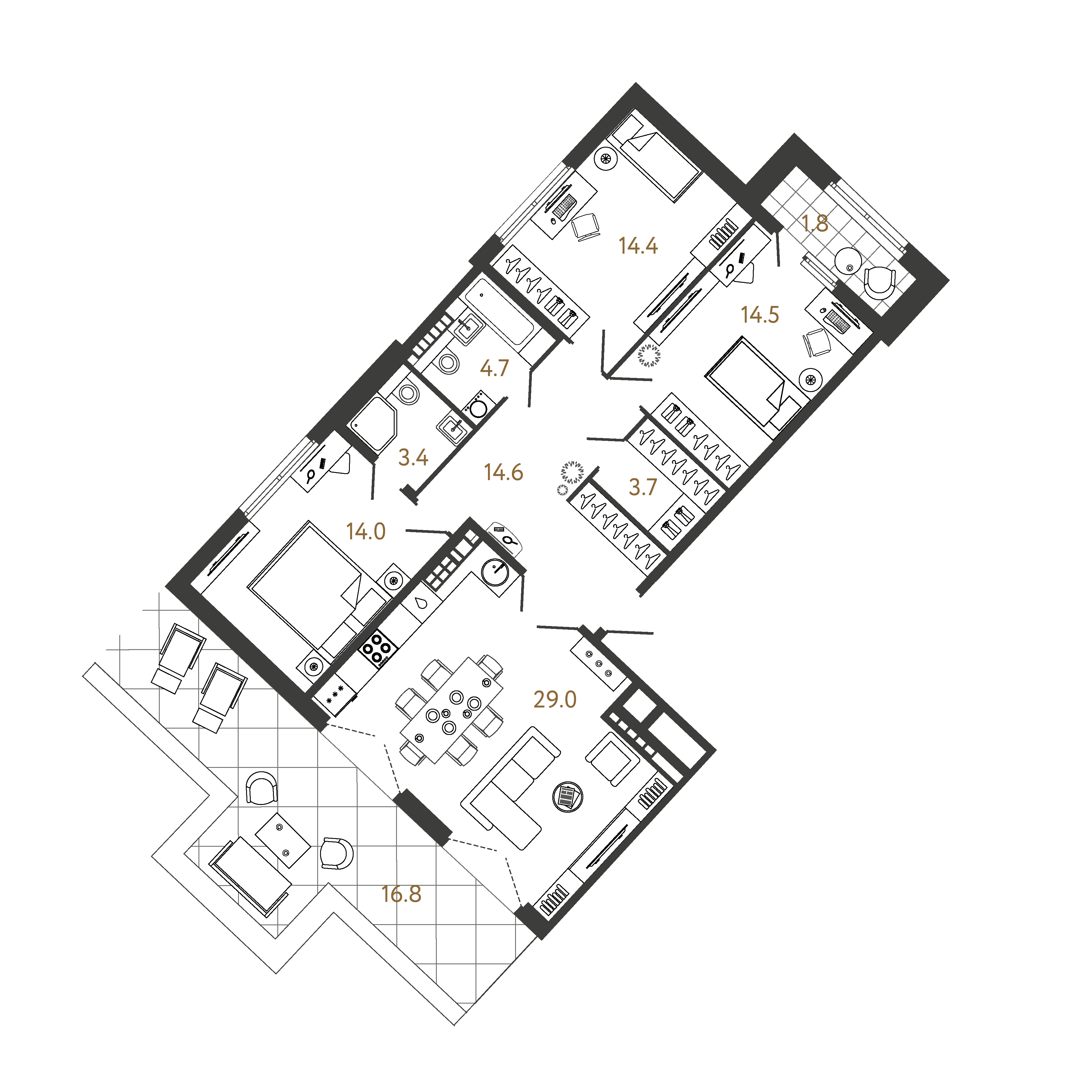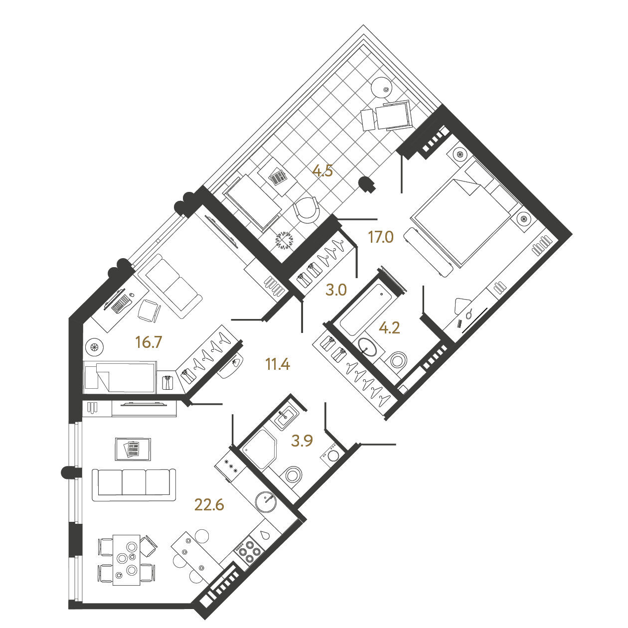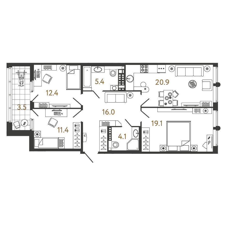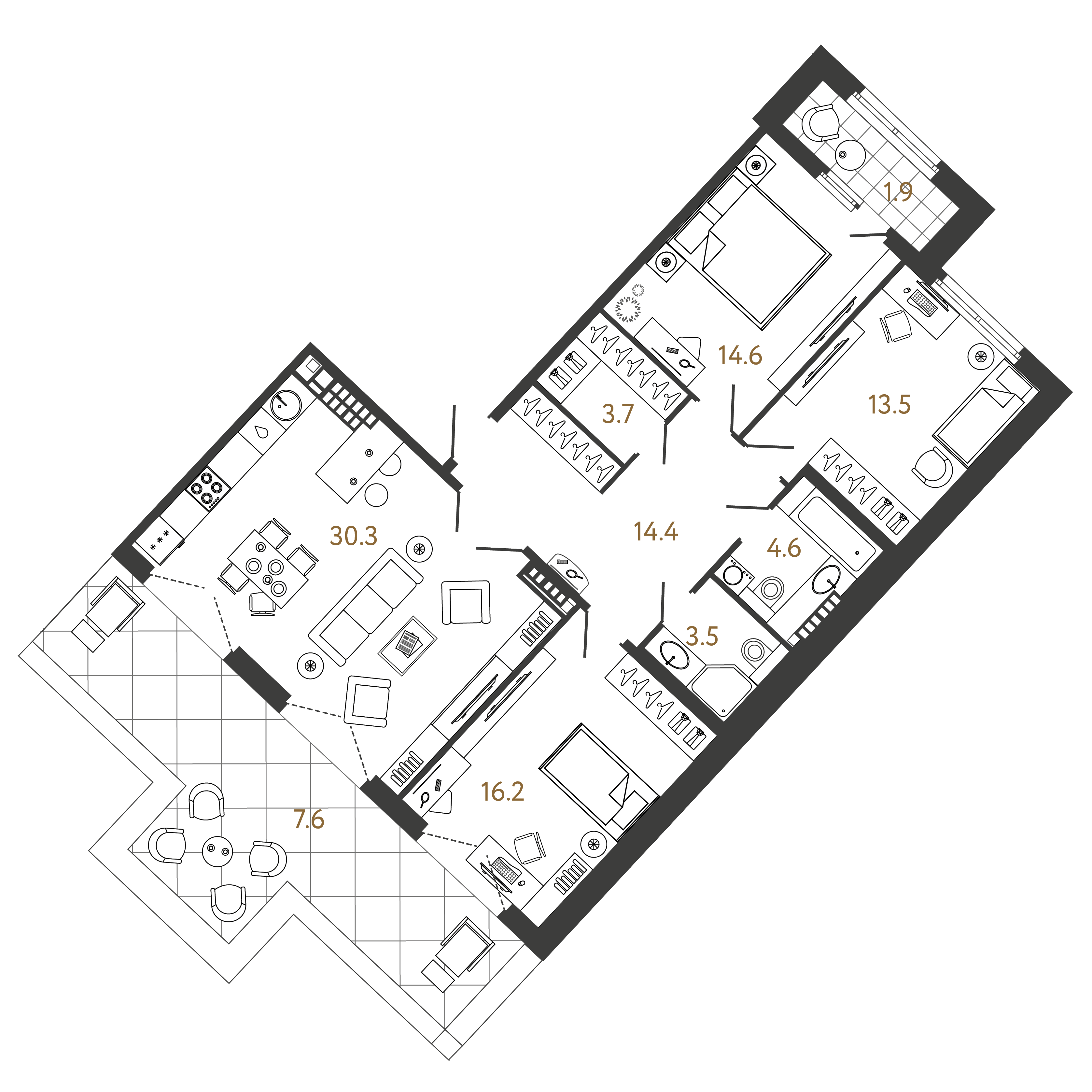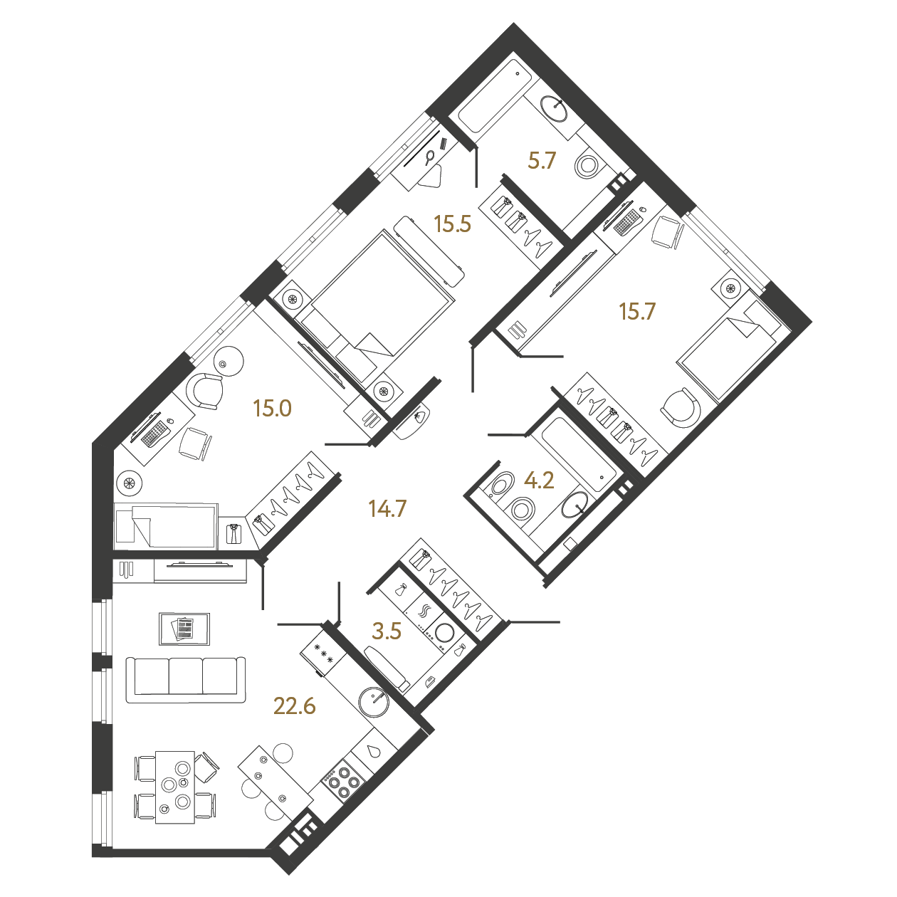 Трехкомнатные квартиры (16 квартир, 15 планировок)