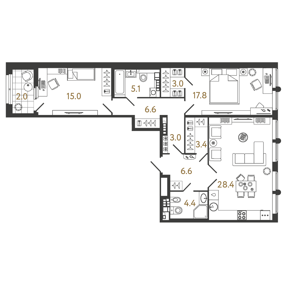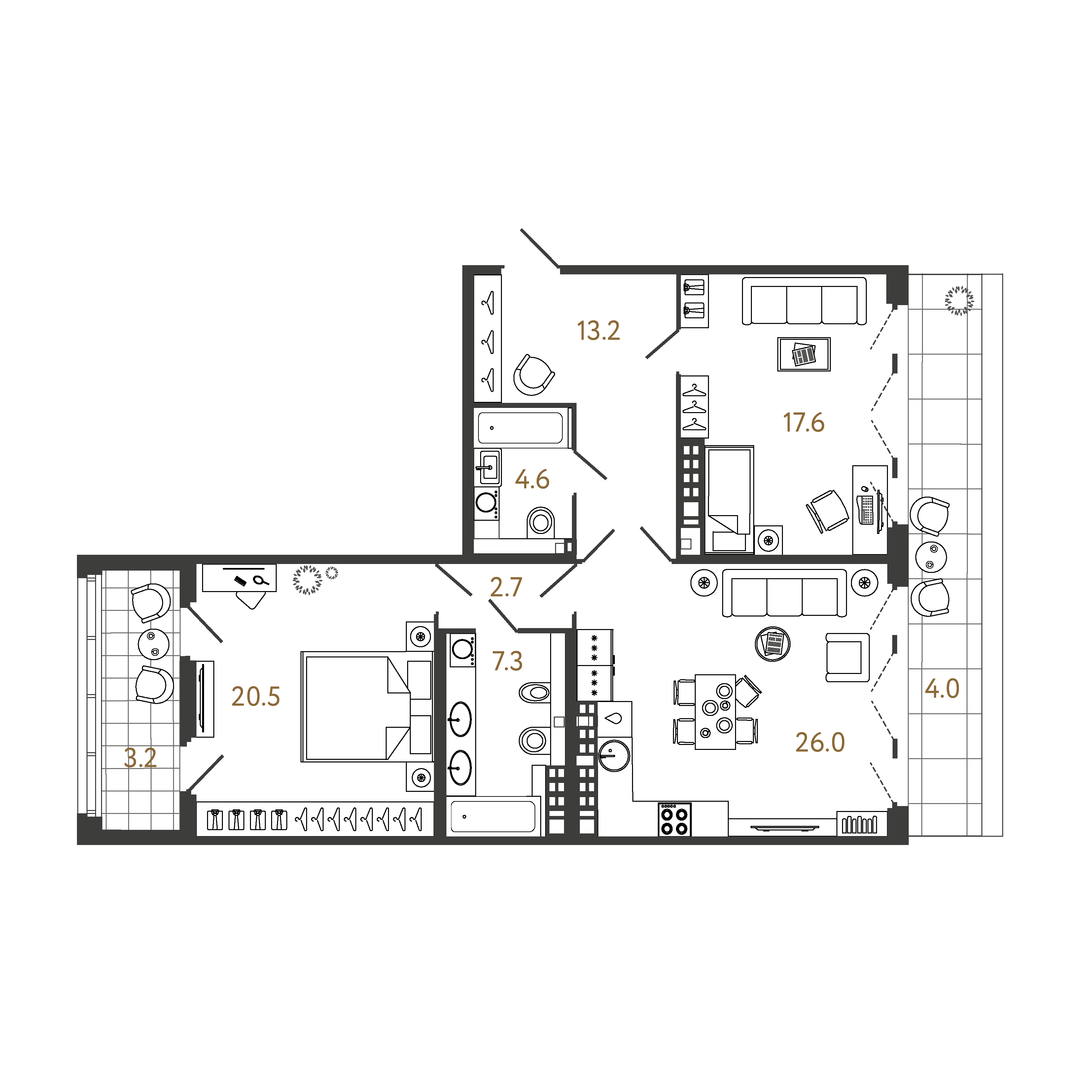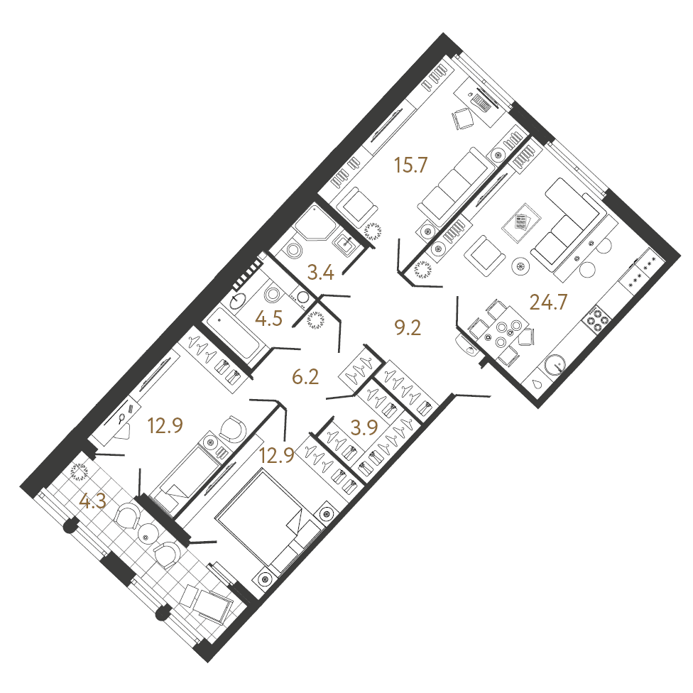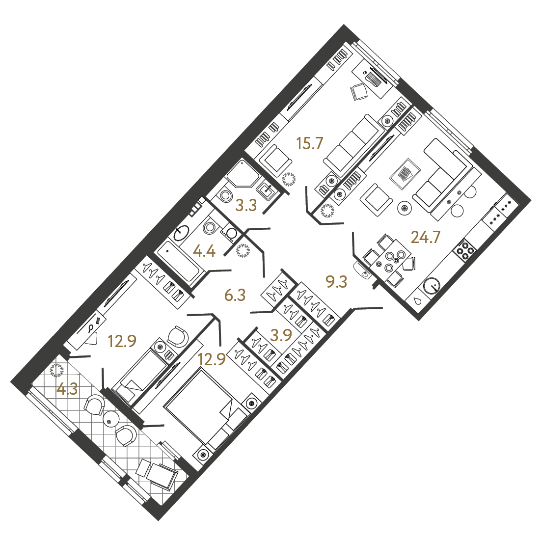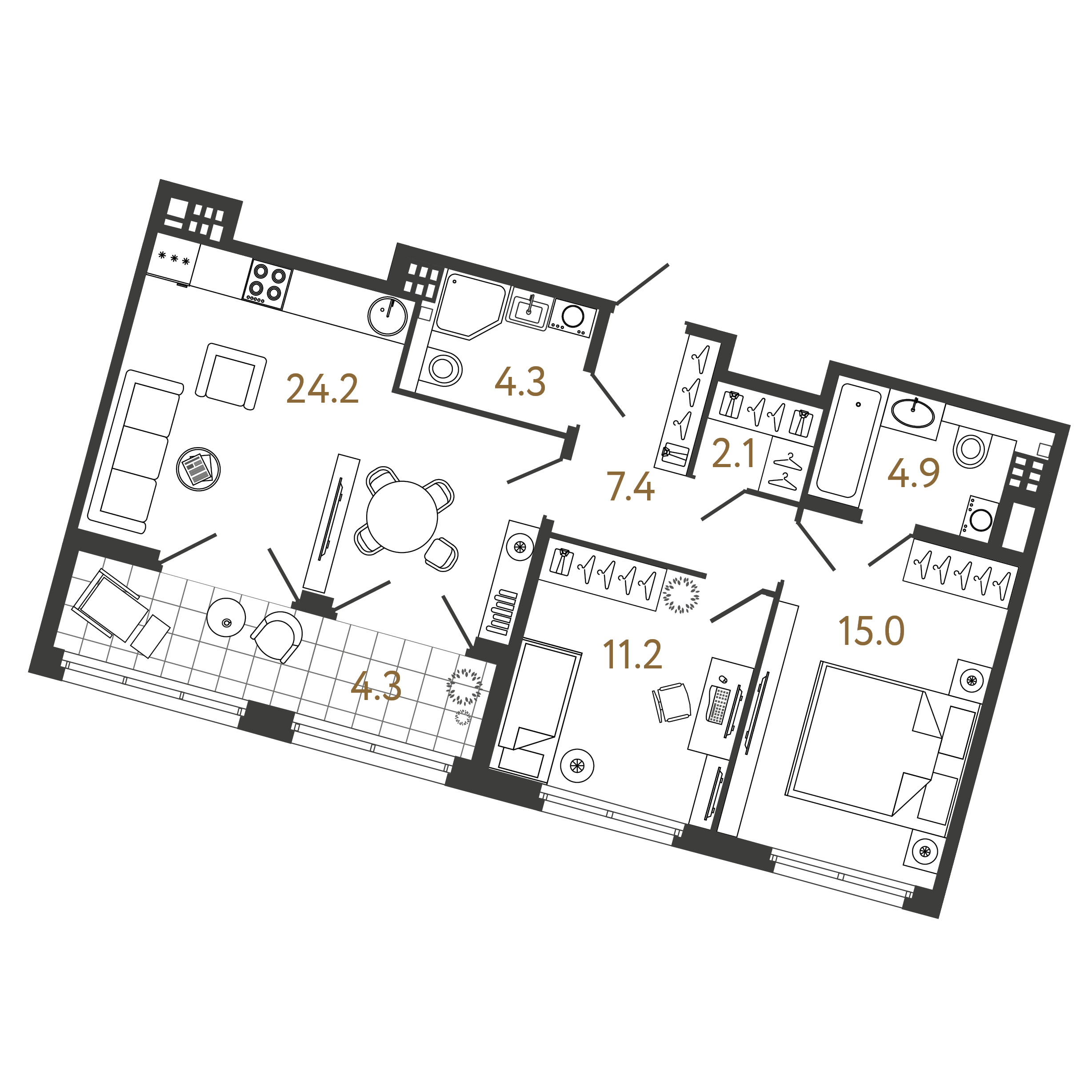 Трехкомнатные квартиры (16 квартир, 15 планировок)