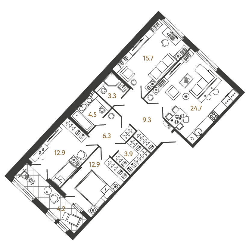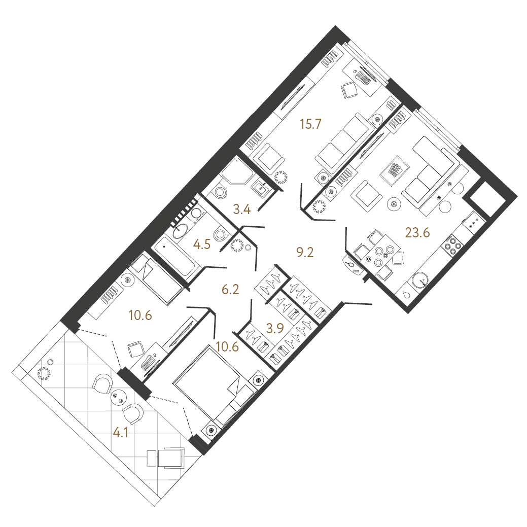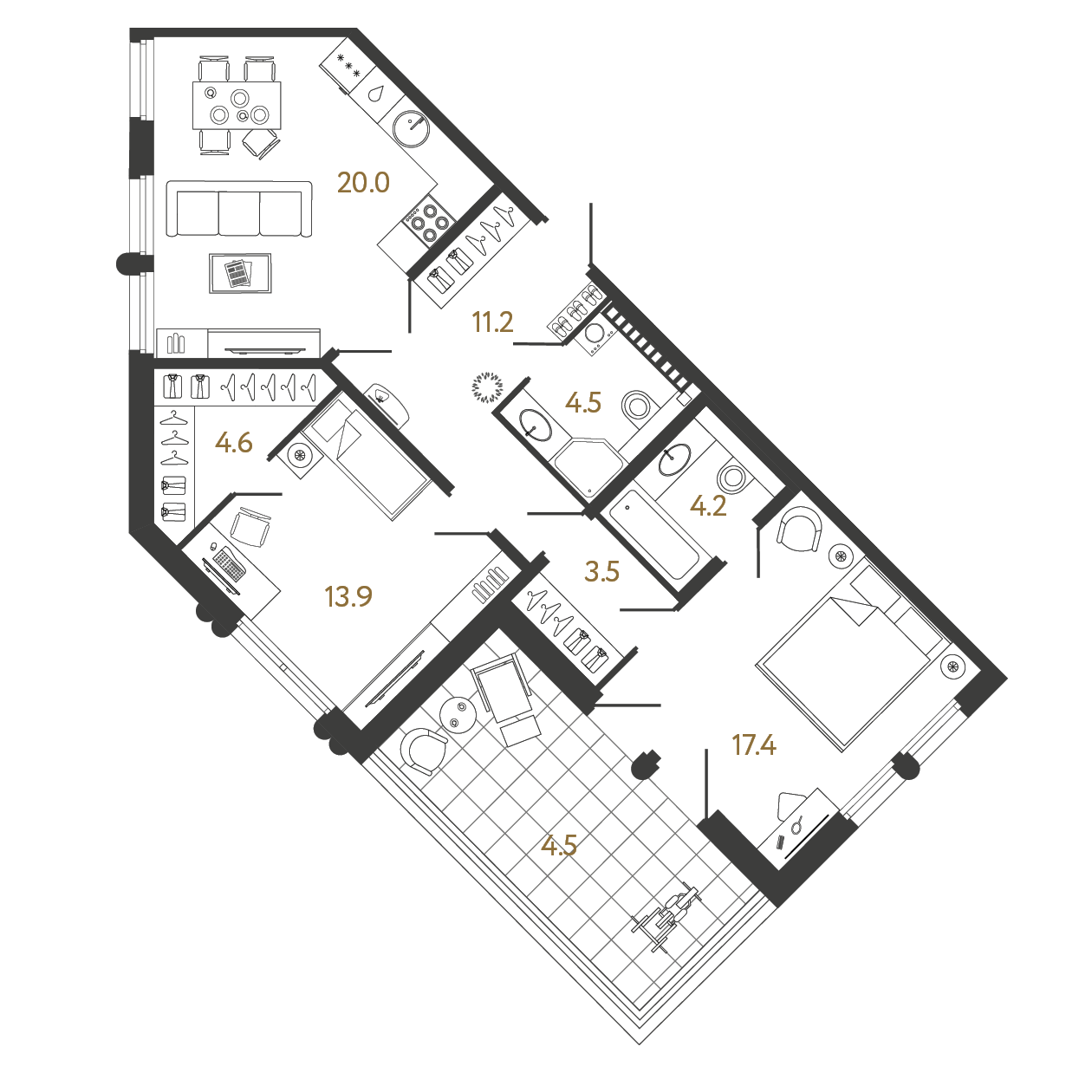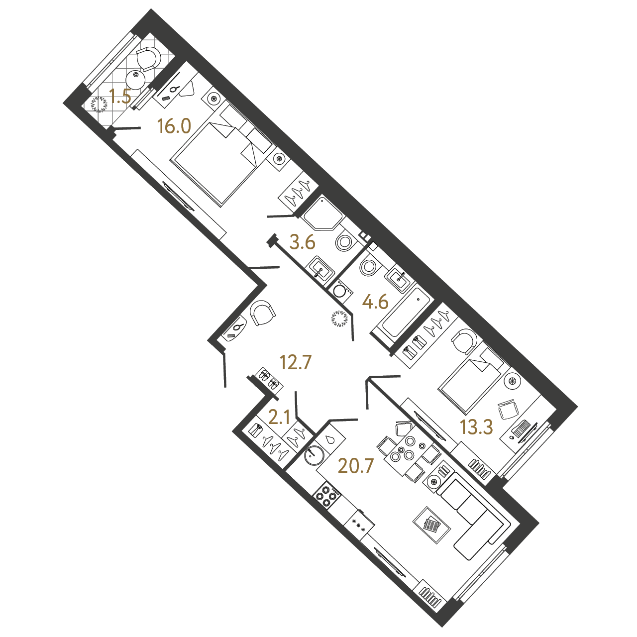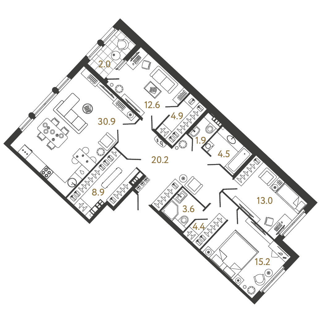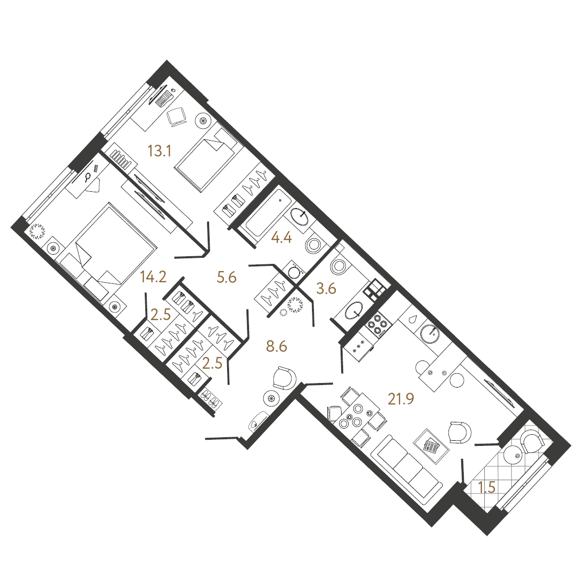 Трехкомнатные квартиры (16 квартир, 15 планировок)